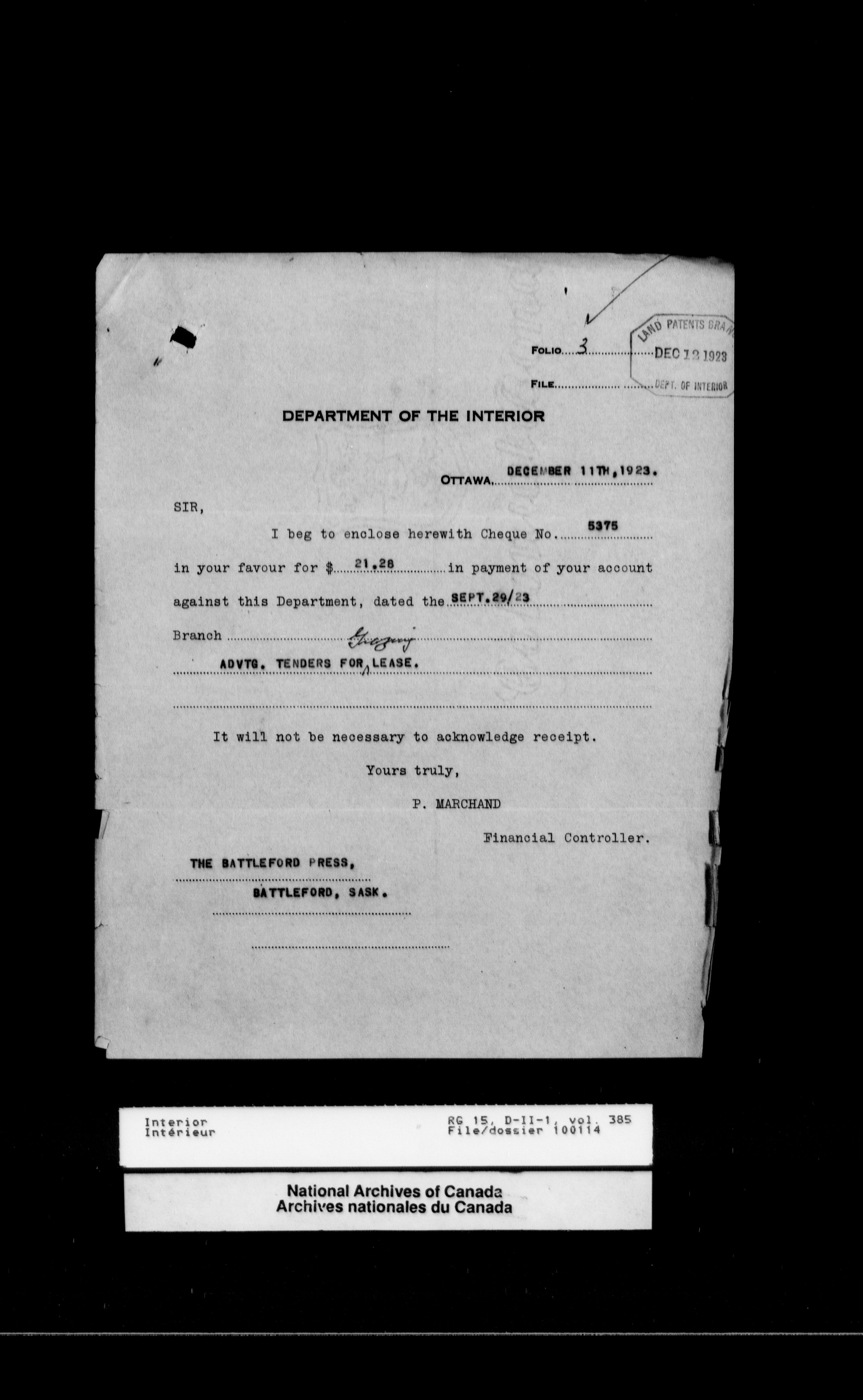Central registry subject files created by the Dominion Lands Branch - 13097