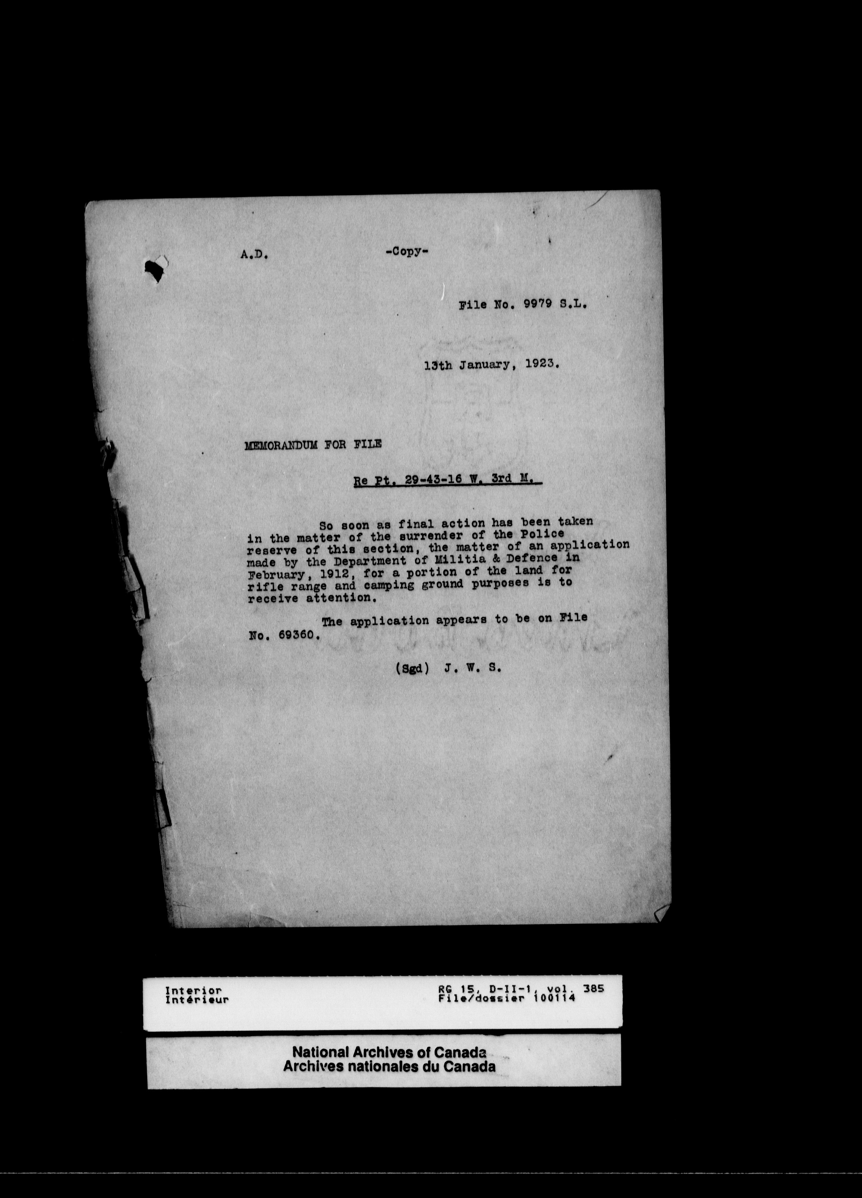 Central registry subject files created by the Dominion Lands Branch - 13098