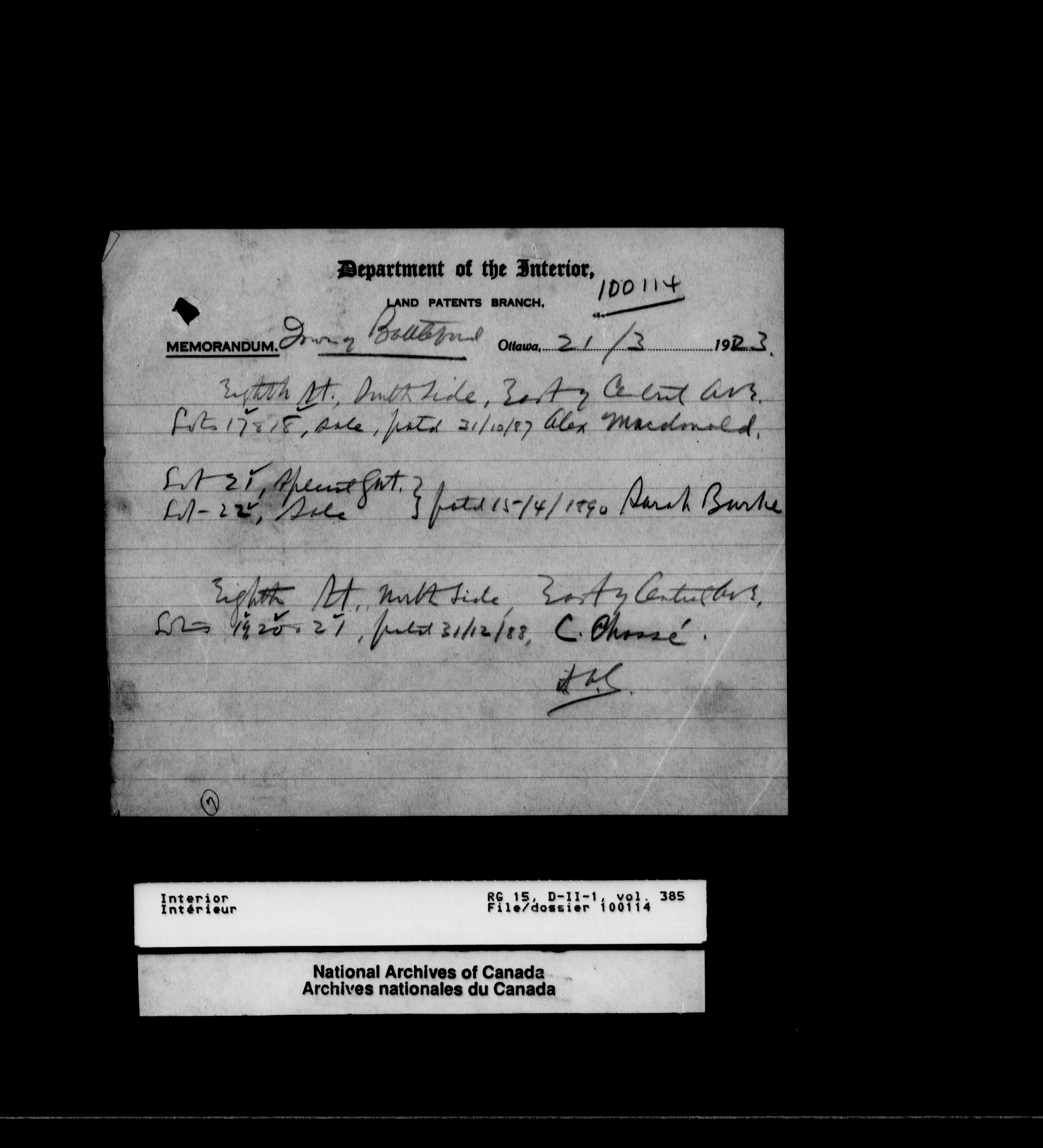 Central registry subject files created by the Dominion Lands Branch - 13098