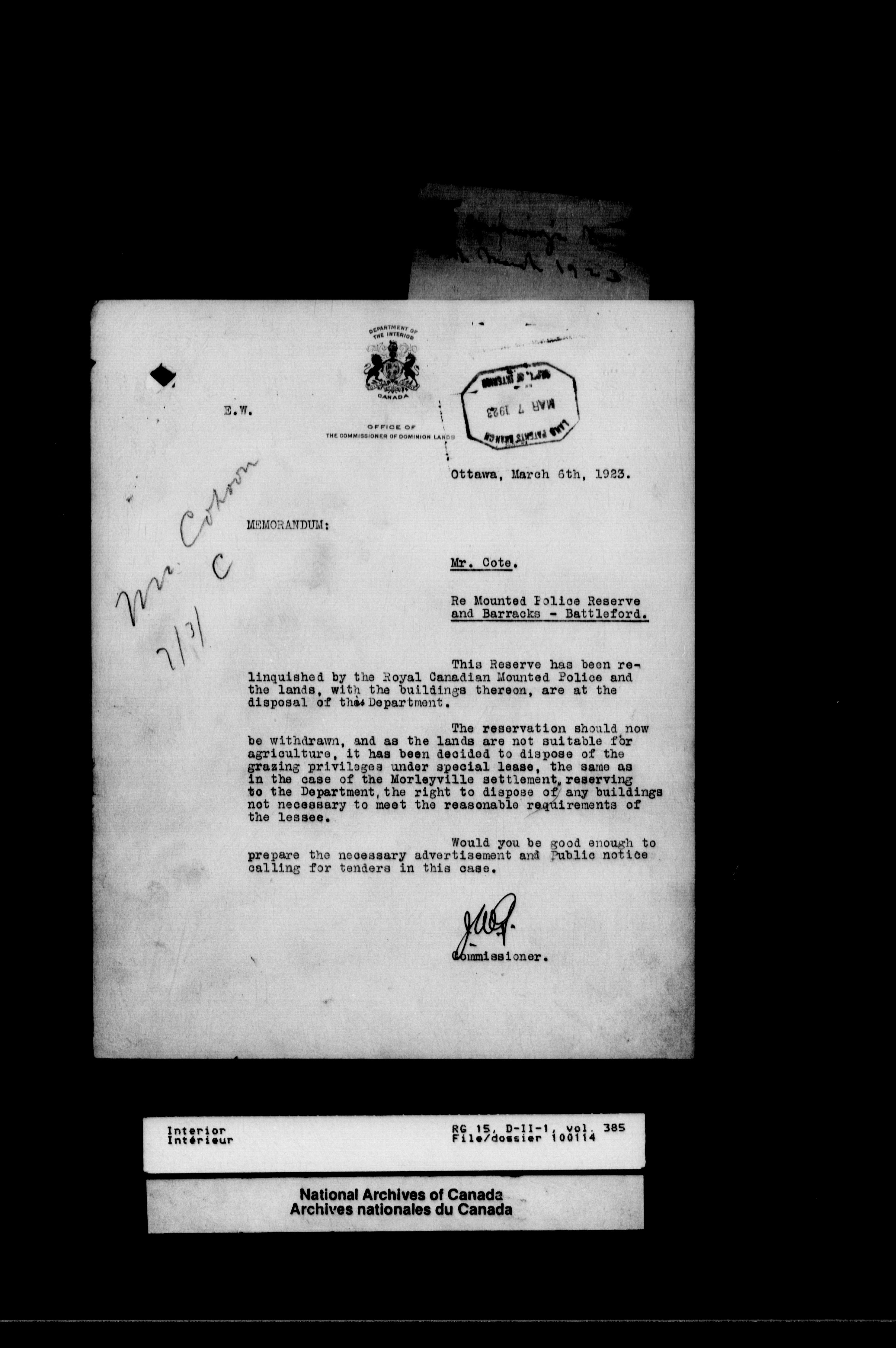 Central registry subject files created by the Dominion Lands Branch - 13098