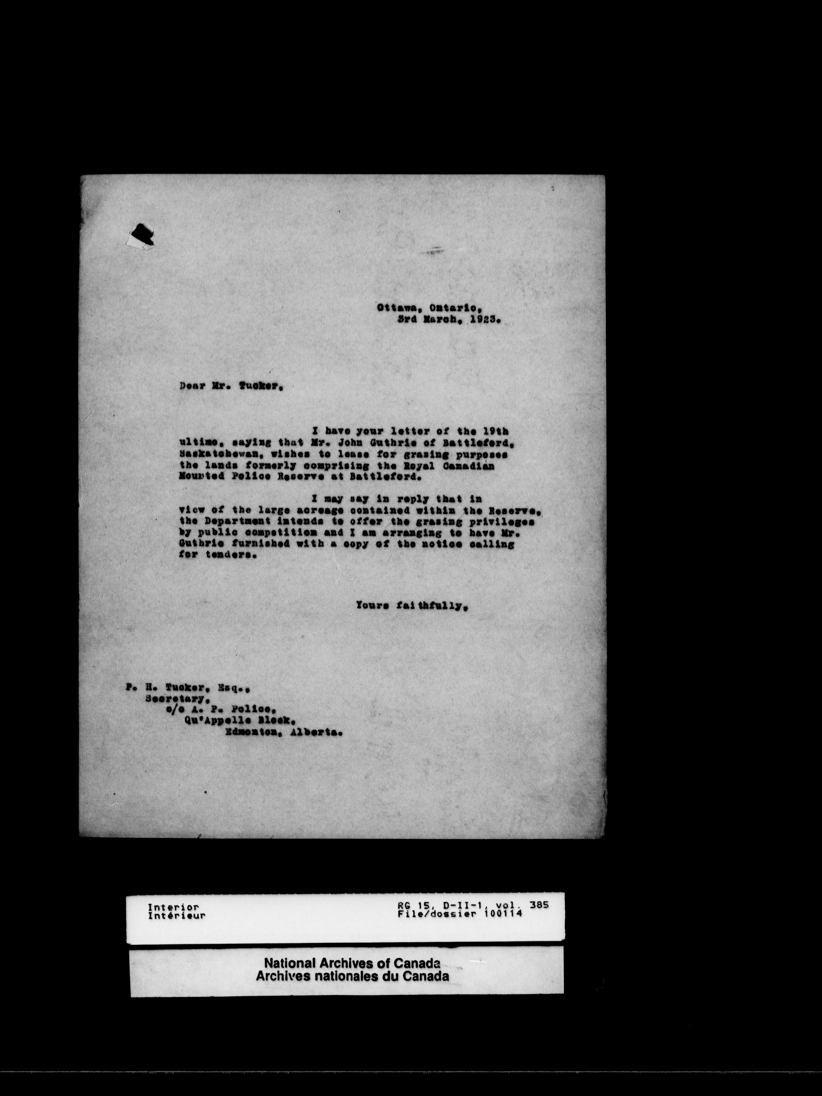 Central registry subject files created by the Dominion Lands Branch - 13098
