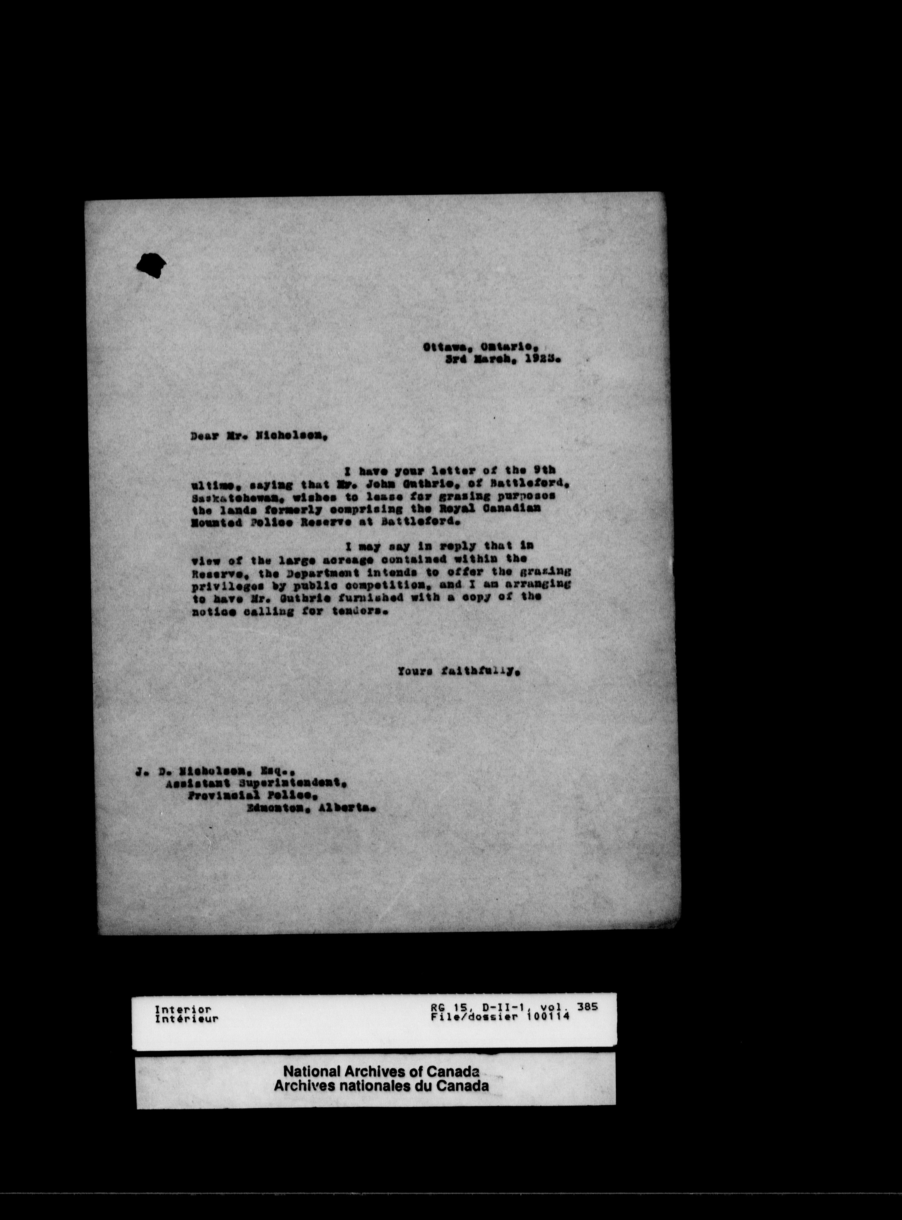 Central registry subject files created by the Dominion Lands Branch - 13098