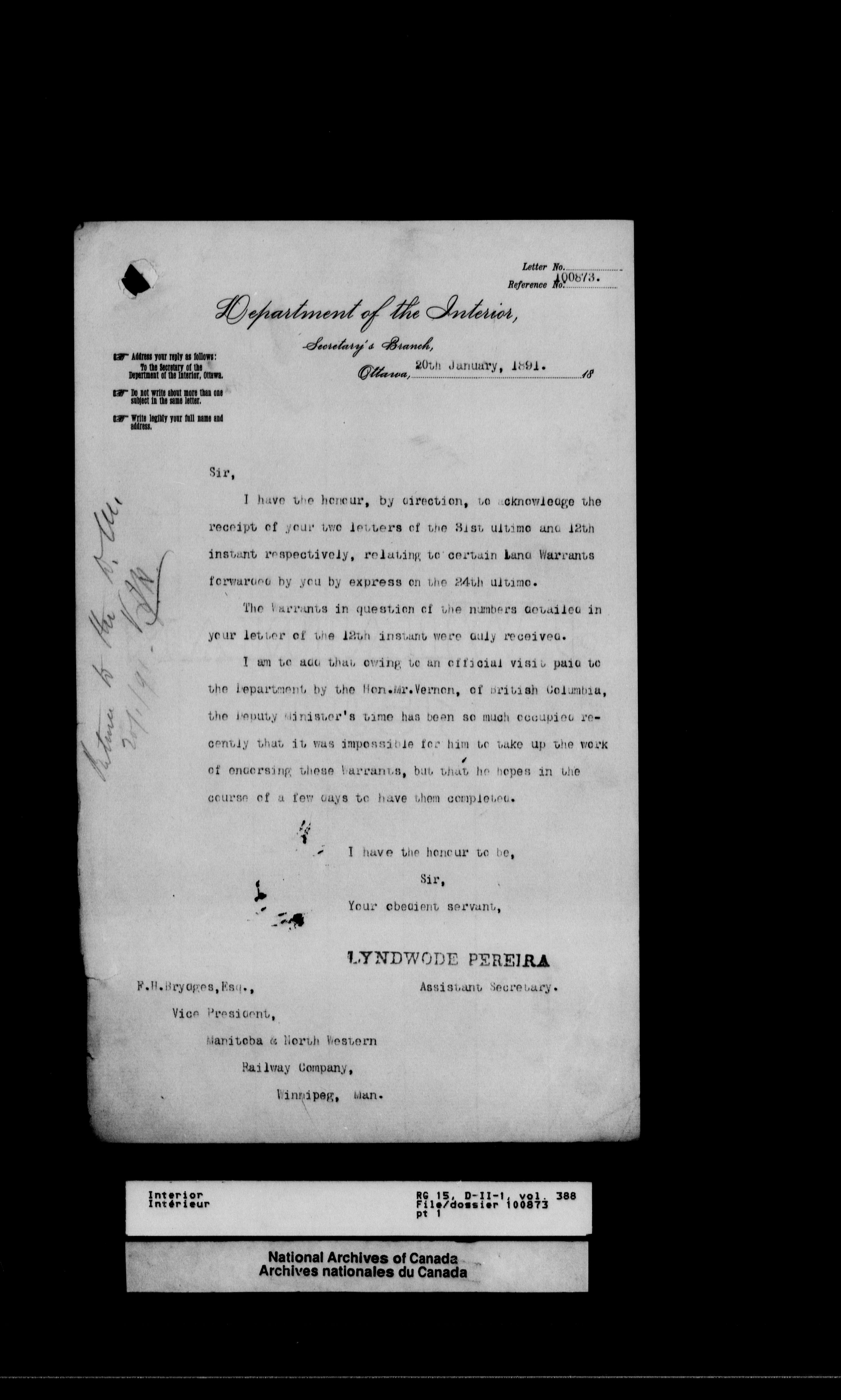 Central registry subject files created by the Dominion Lands Branch - 13099
