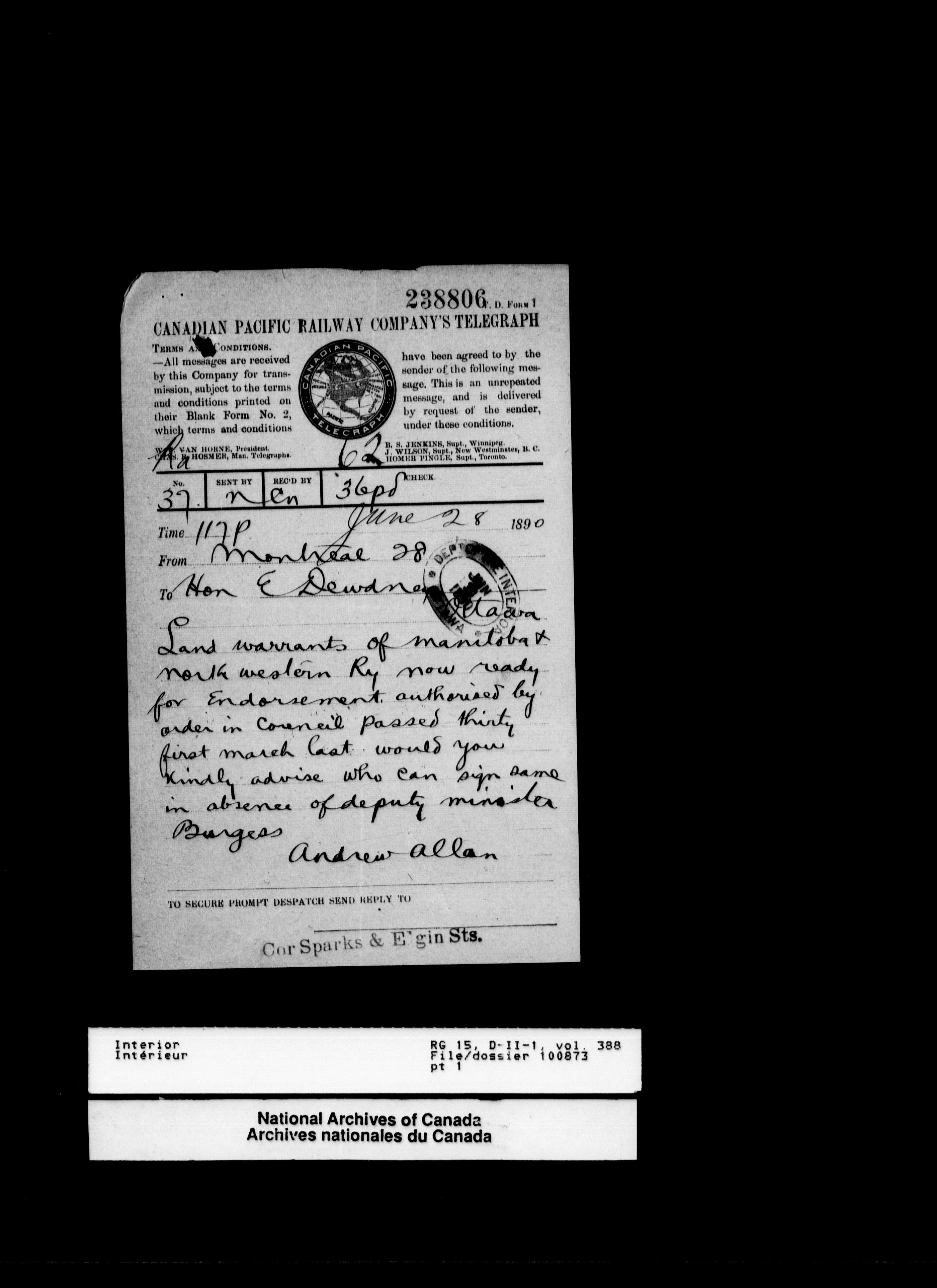 Central registry subject files created by the Dominion Lands Branch - 13099