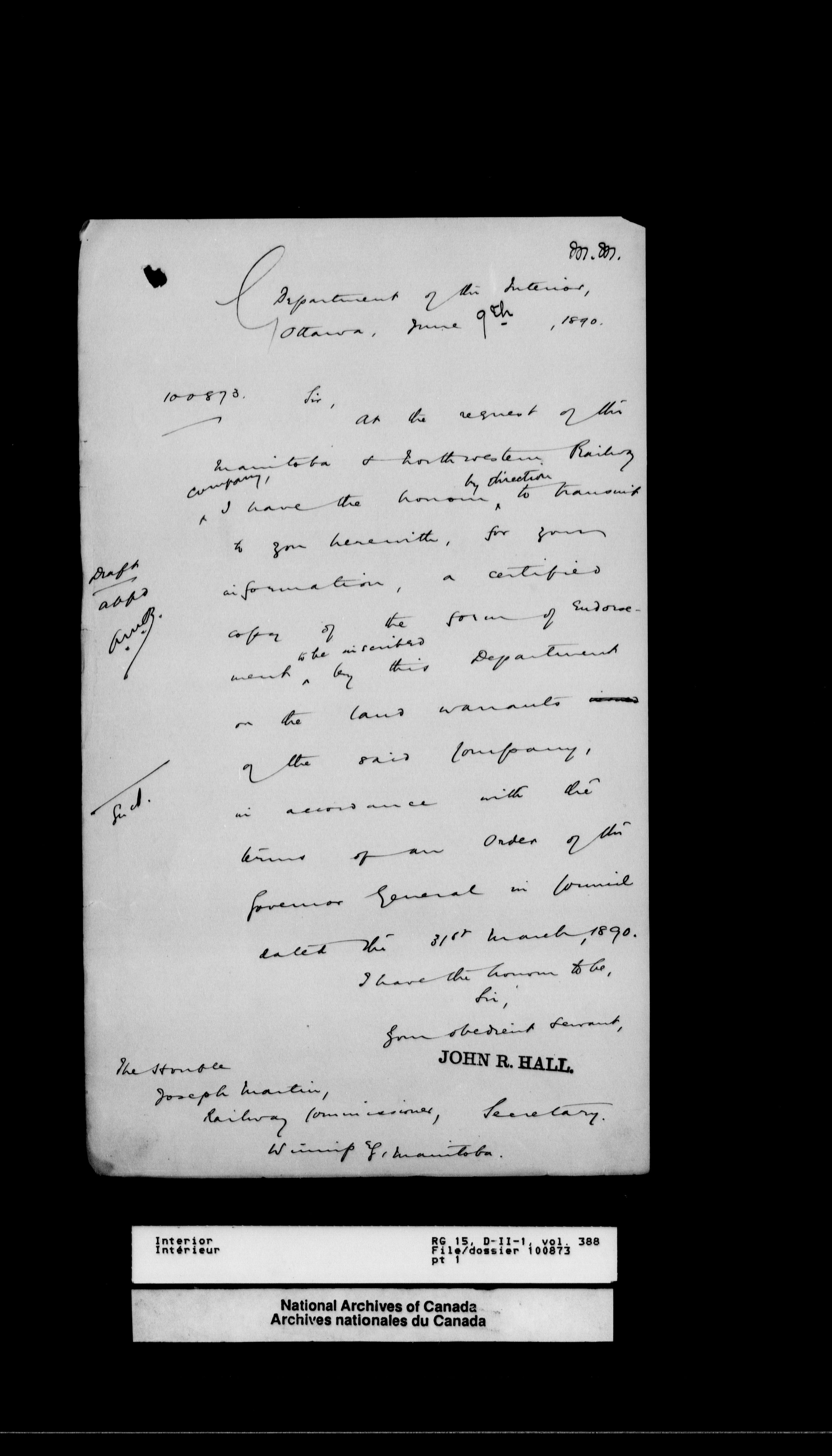 Central registry subject files created by the Dominion Lands Branch - 13099