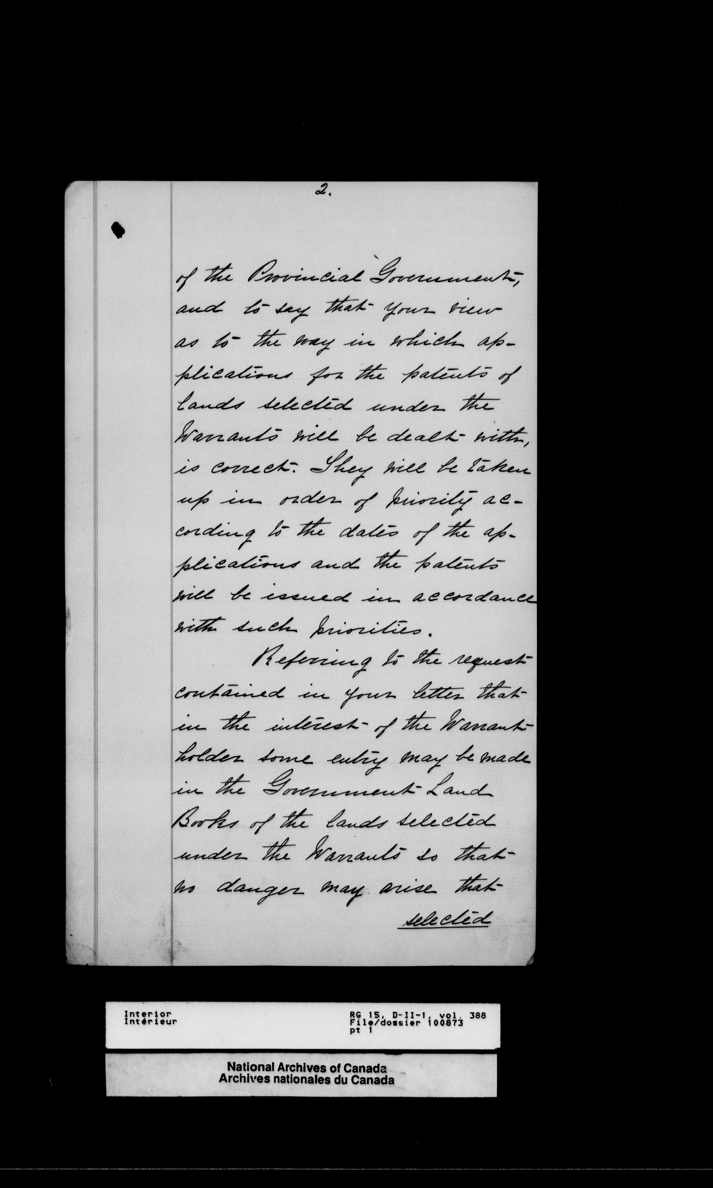 Central registry subject files created by the Dominion Lands Branch - 13099