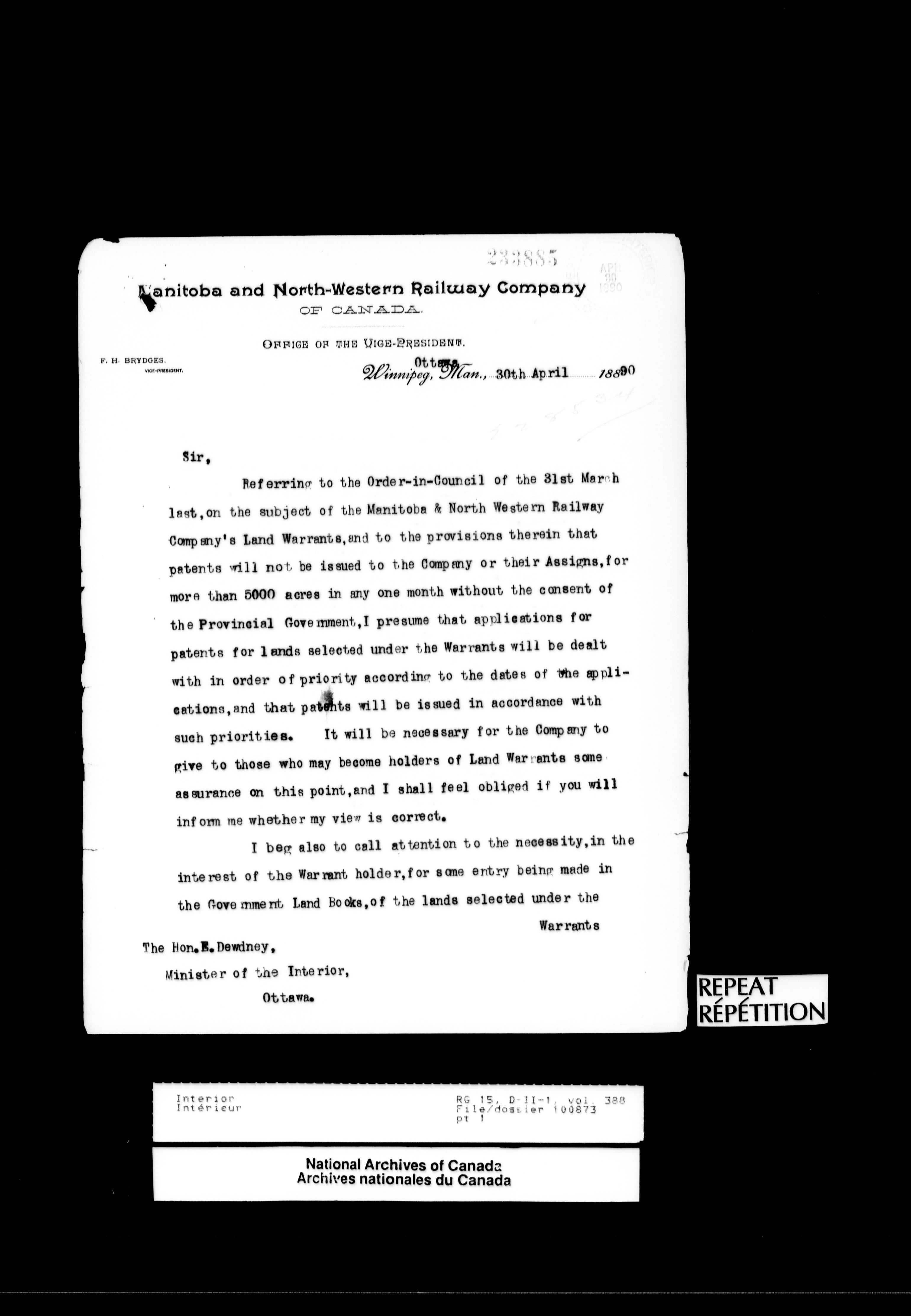 Central registry subject files created by the Dominion Lands Branch - 13099
