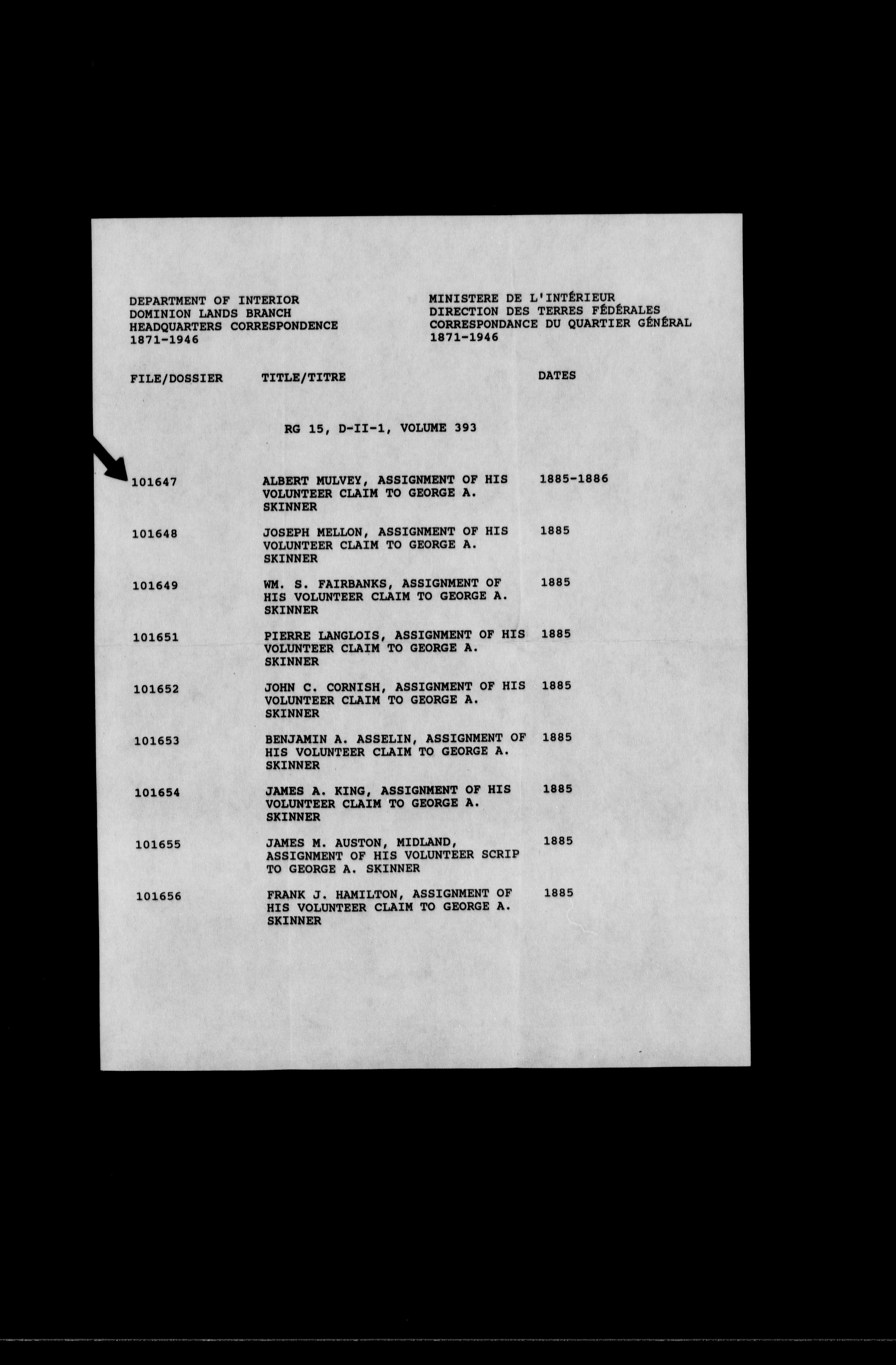 Central registry subject files created by the Dominion Lands Branch - 13102