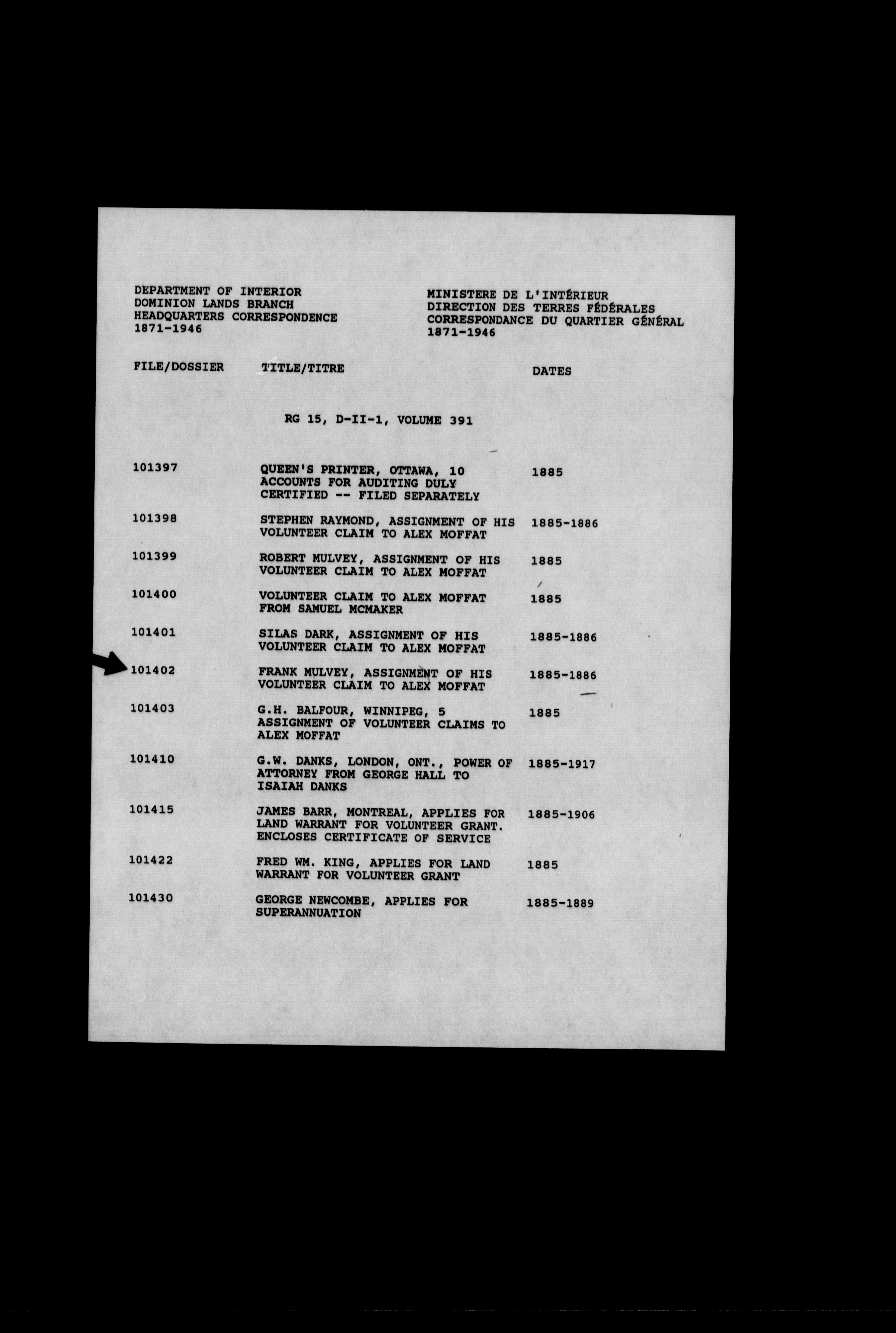Central registry subject files created by the Dominion Lands Branch - 13102