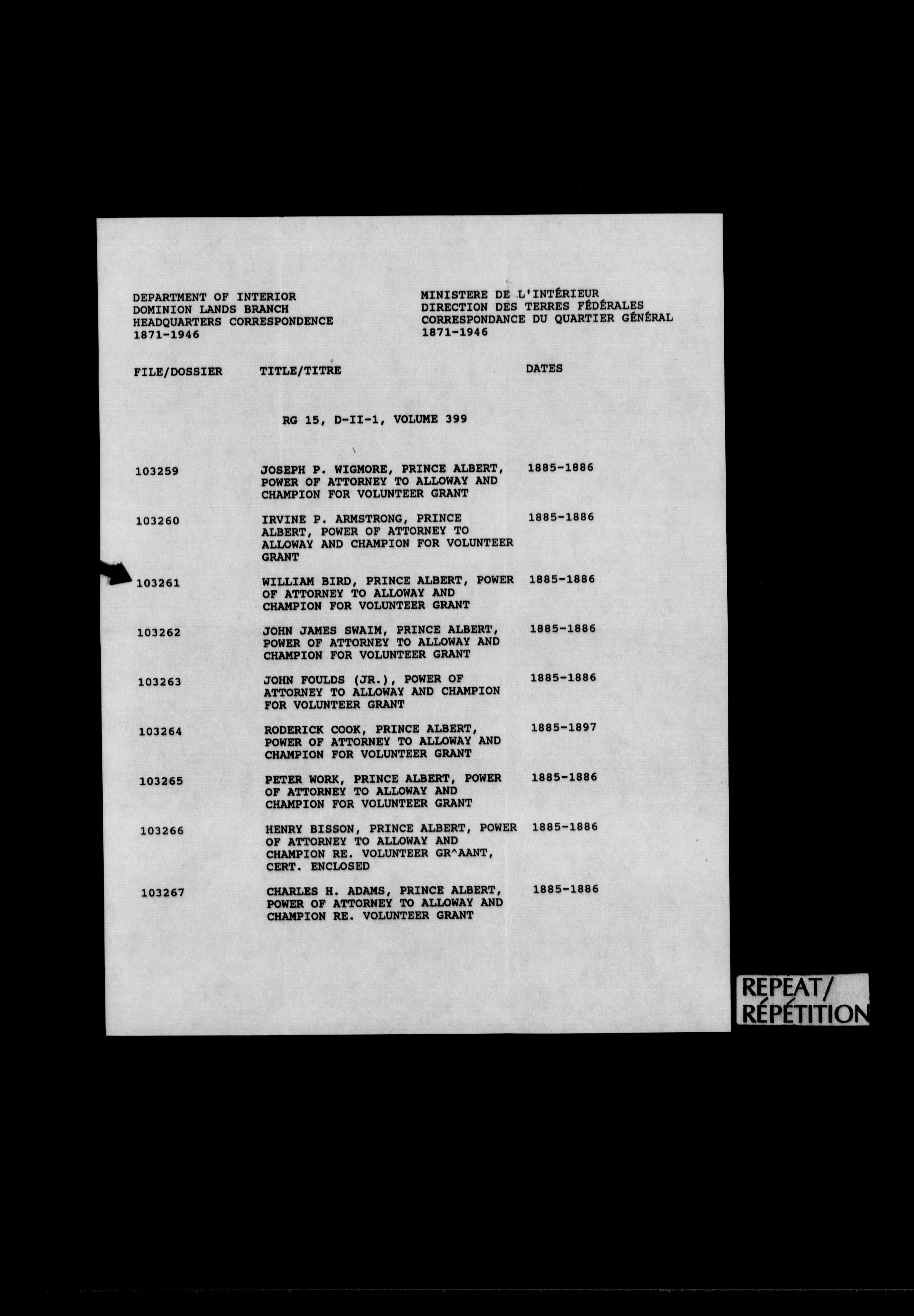 Central registry subject files created by the Dominion Lands Branch - 13105