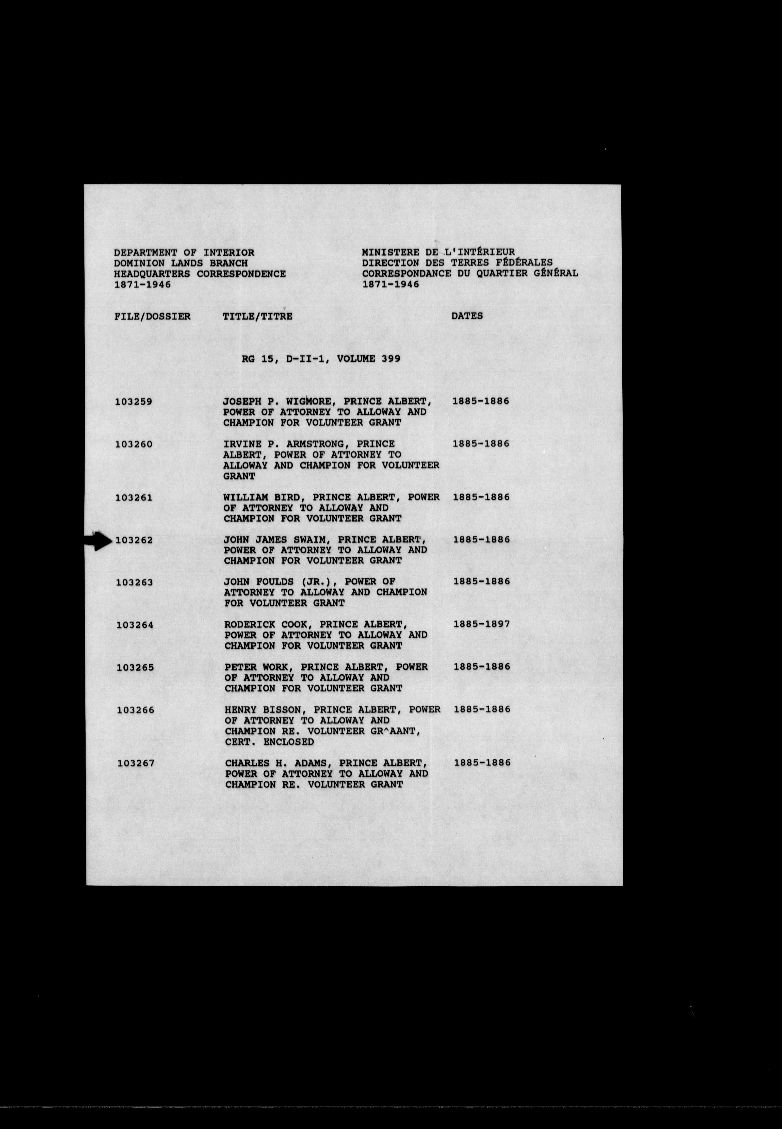 Central registry subject files created by the Dominion Lands Branch - 13105