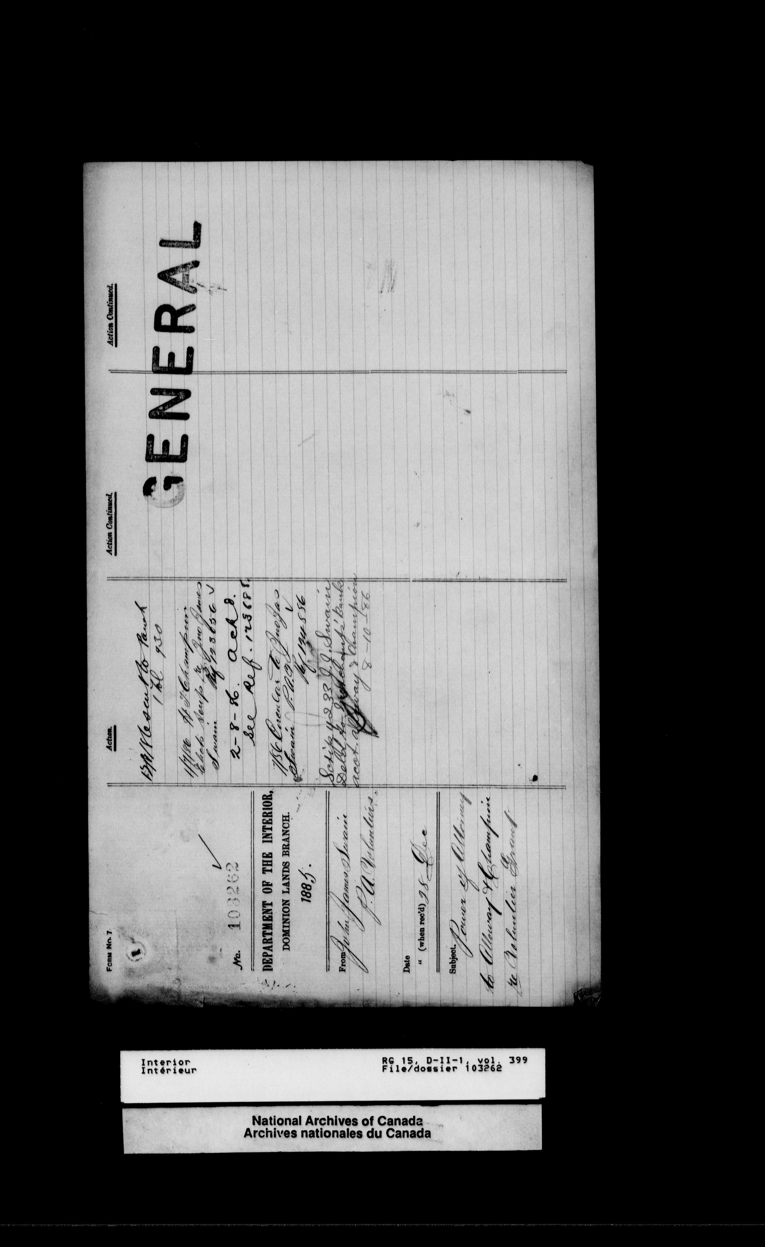 Central registry subject files created by the Dominion Lands Branch - 13105