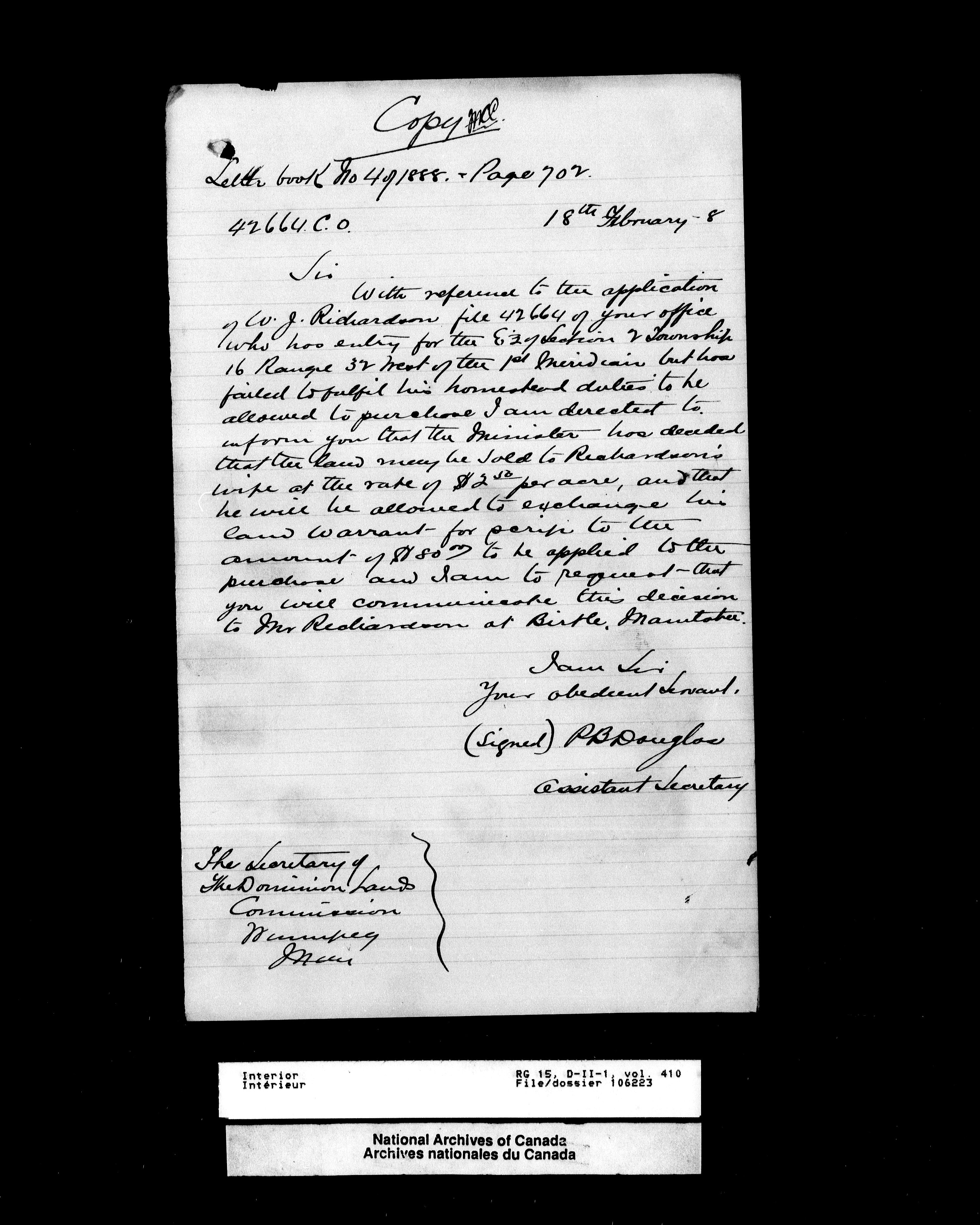 Central registry subject files created by the Dominion Lands Branch - 13113