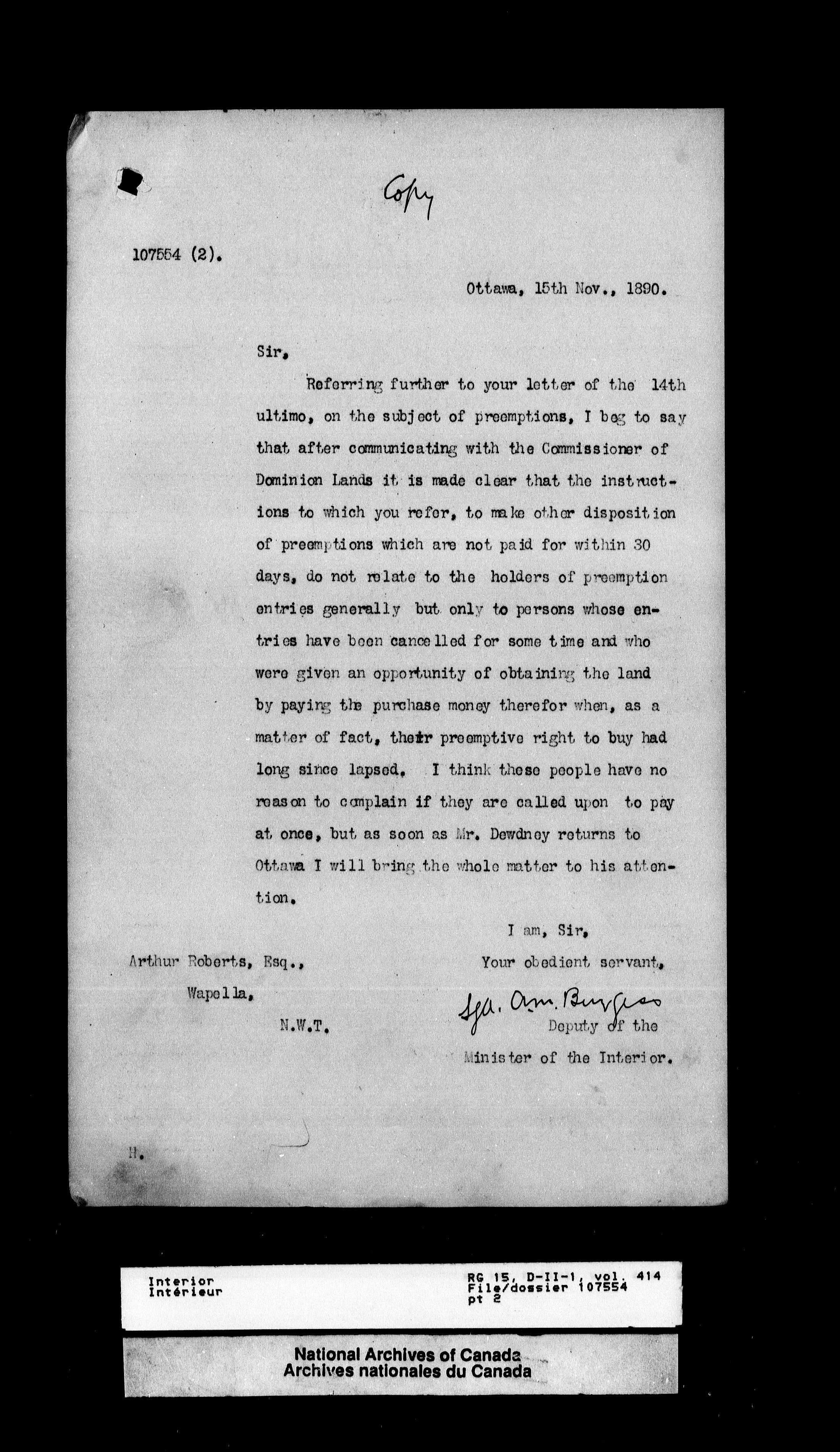 Central registry subject files created by the Dominion Lands Branch - 13116