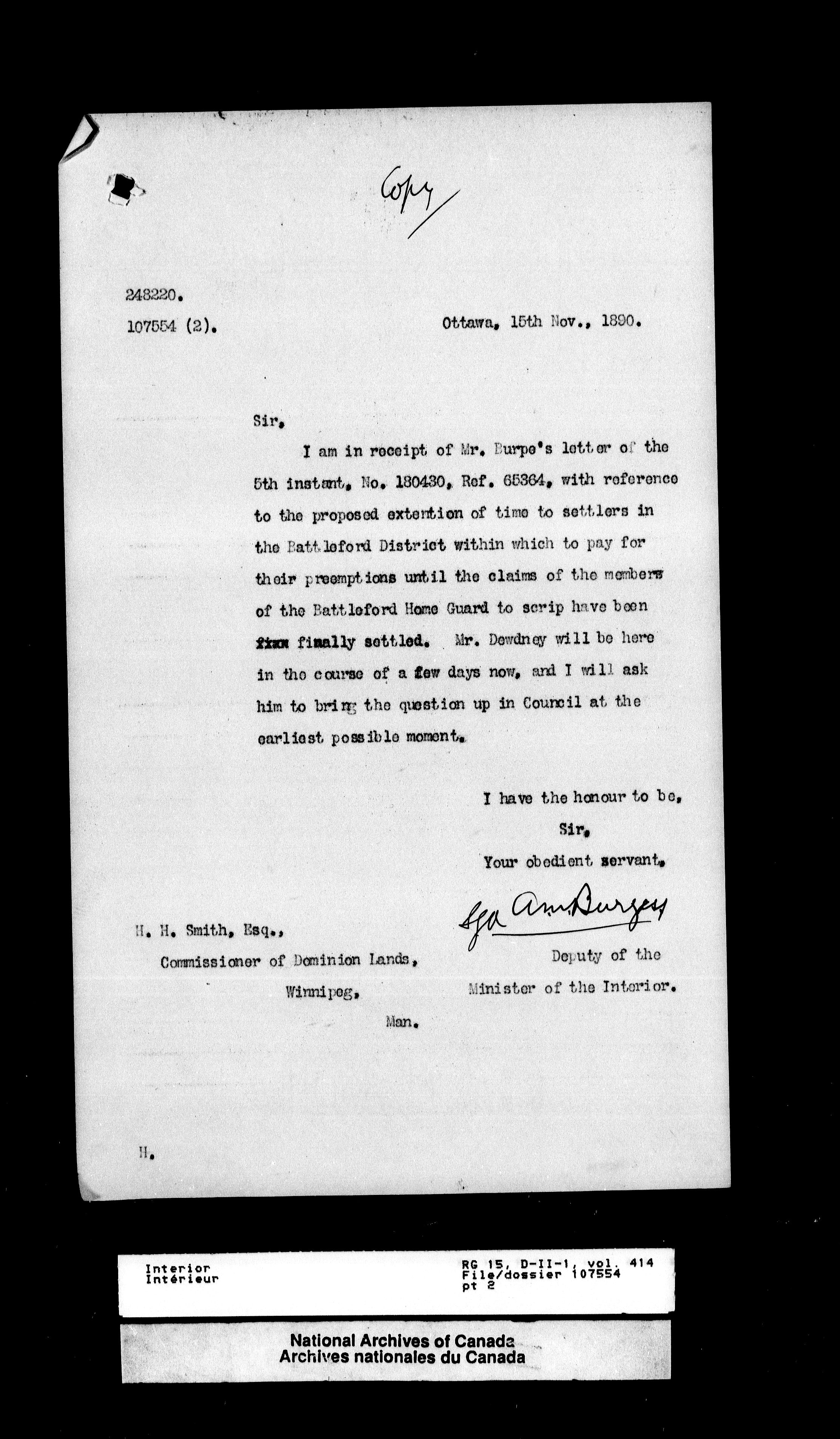 Central registry subject files created by the Dominion Lands Branch - 13116