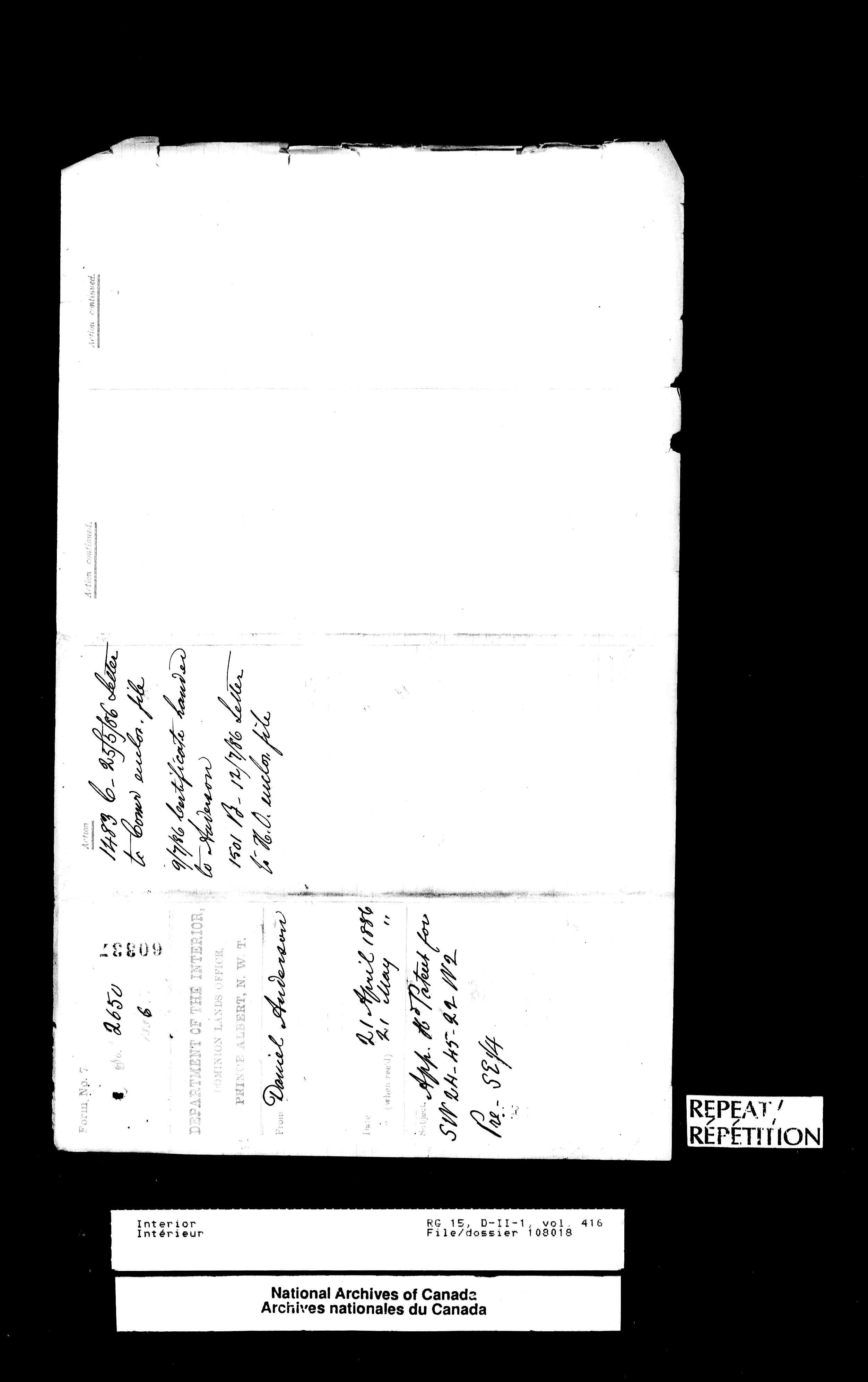 Central registry subject files created by the Dominion Lands Branch - 13118