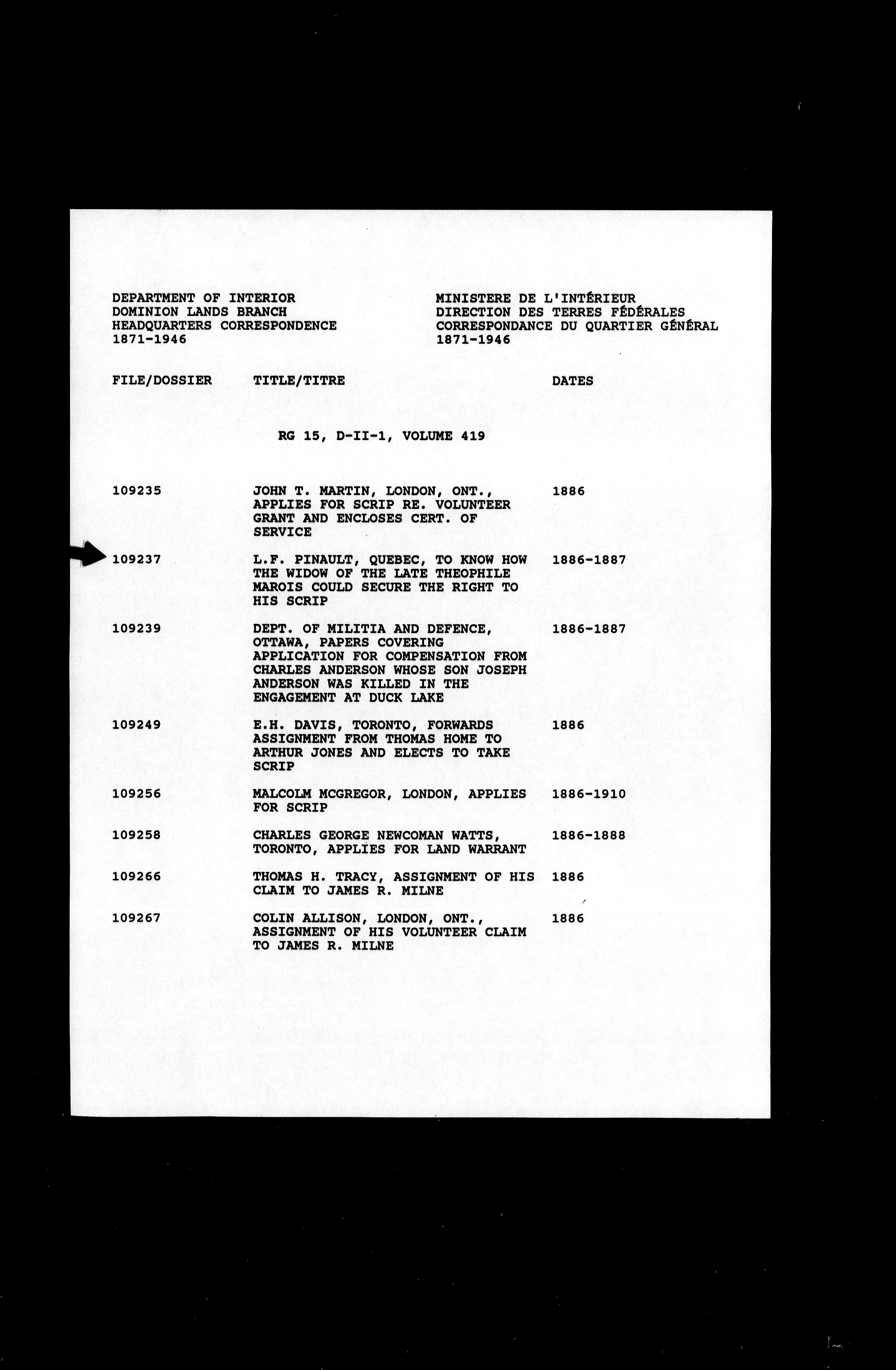 Central registry subject files created by the Dominion Lands Branch - 13120