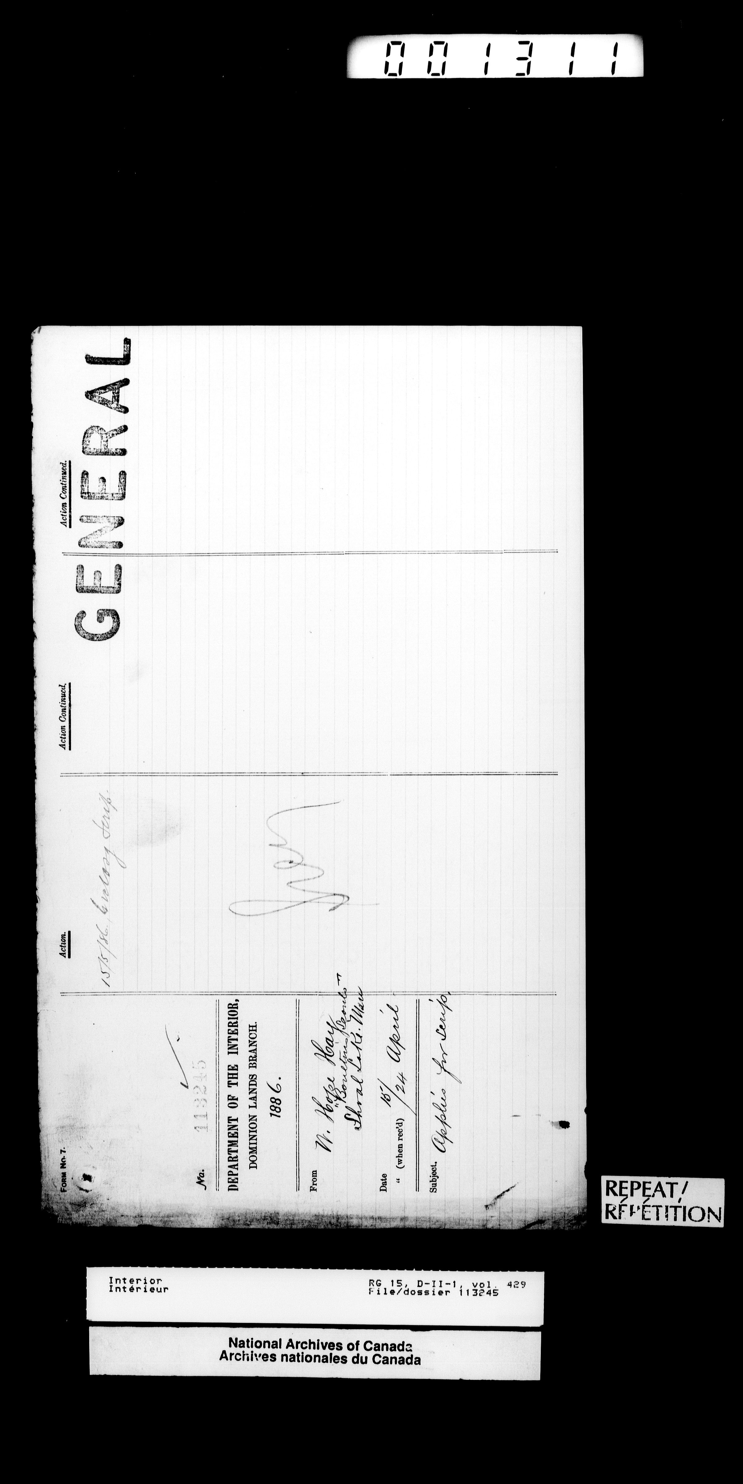 Central registry subject files created by the Dominion Lands Branch - 13125