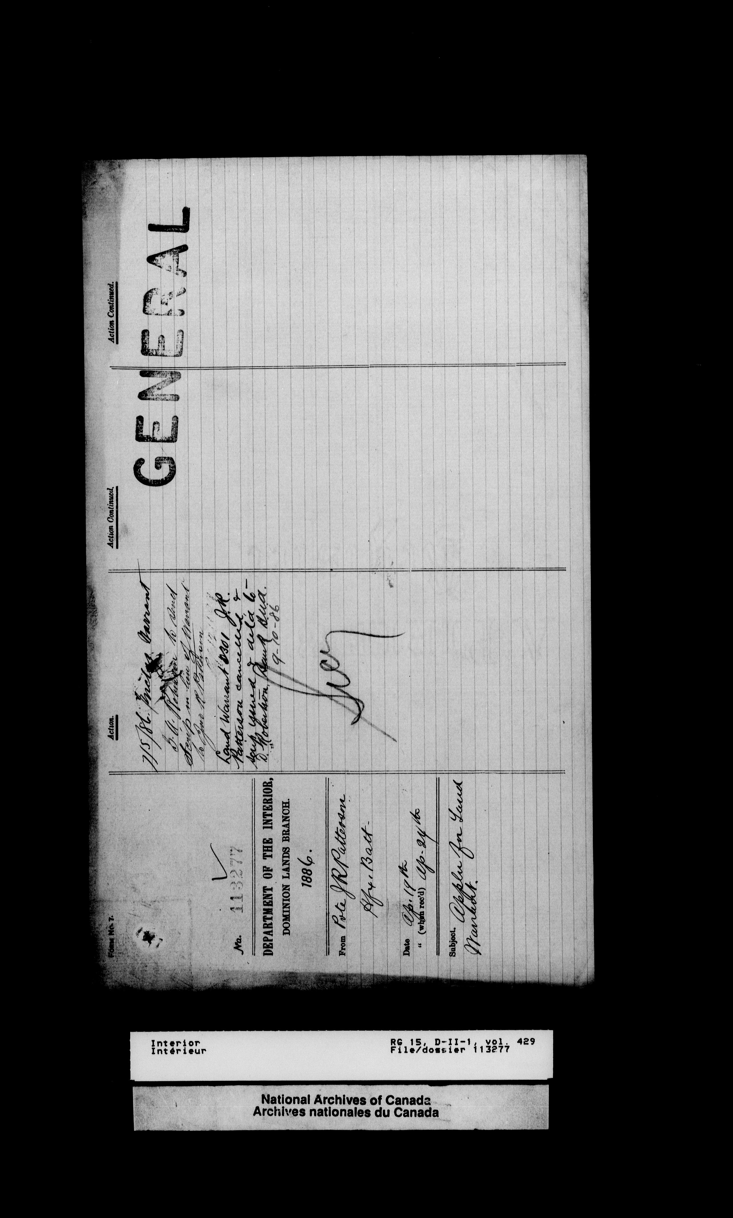 Central registry subject files created by the Dominion Lands Branch - 13126