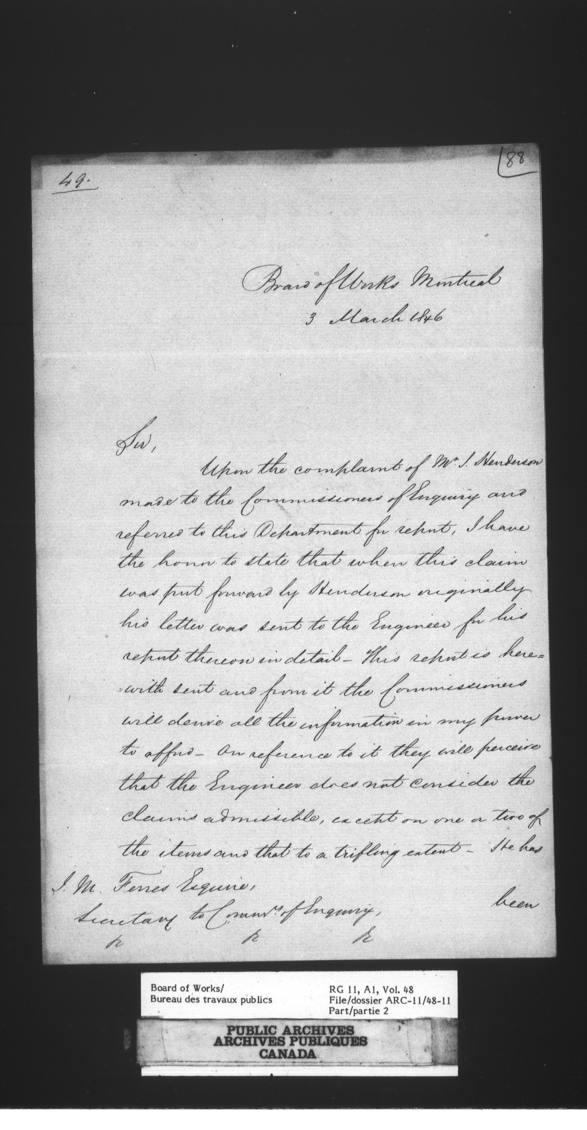 Department of Public Works, Board of Works records : Correspondence in subject files : T-1313