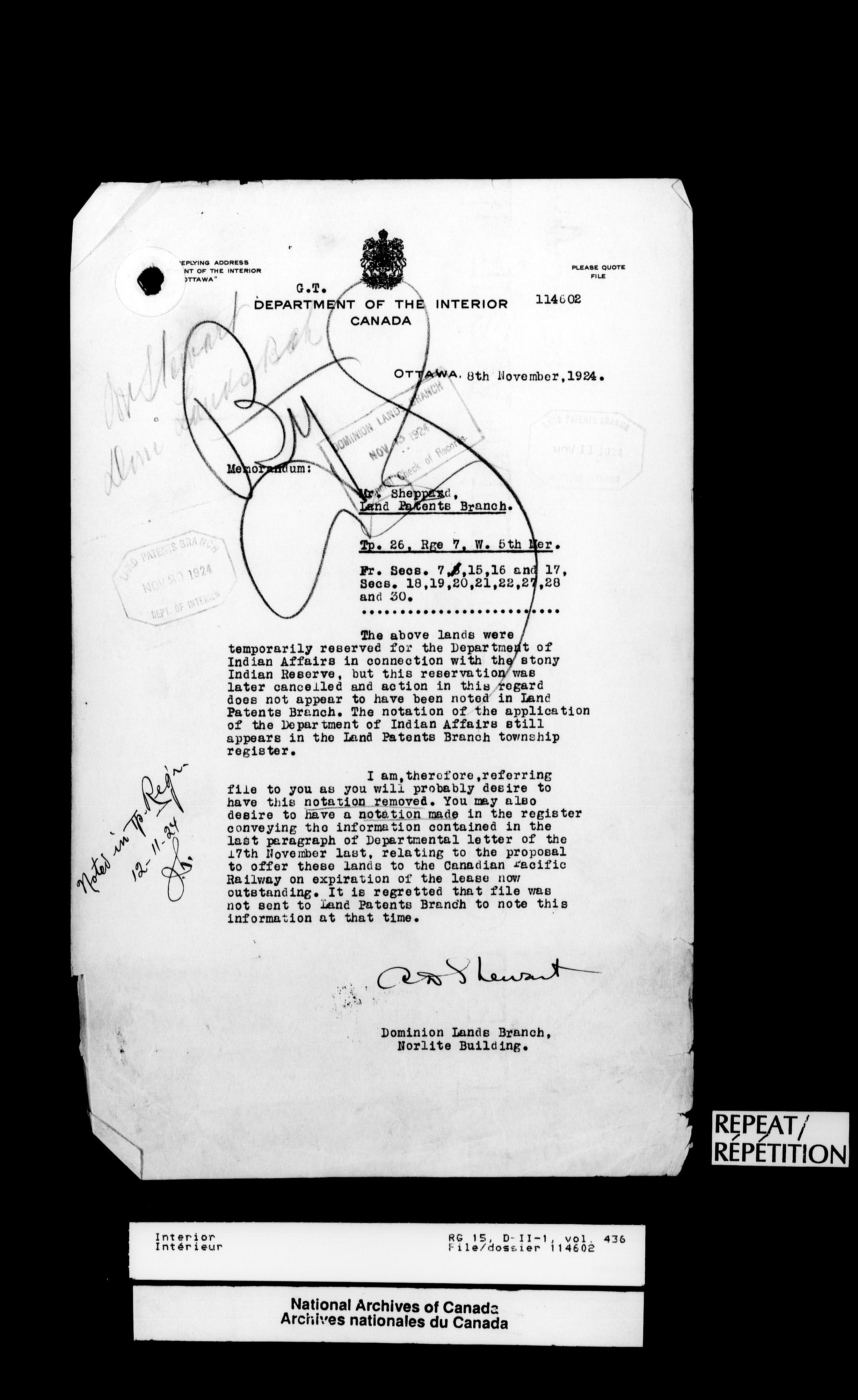 Central registry subject files created by the Dominion Lands Branch - 13130