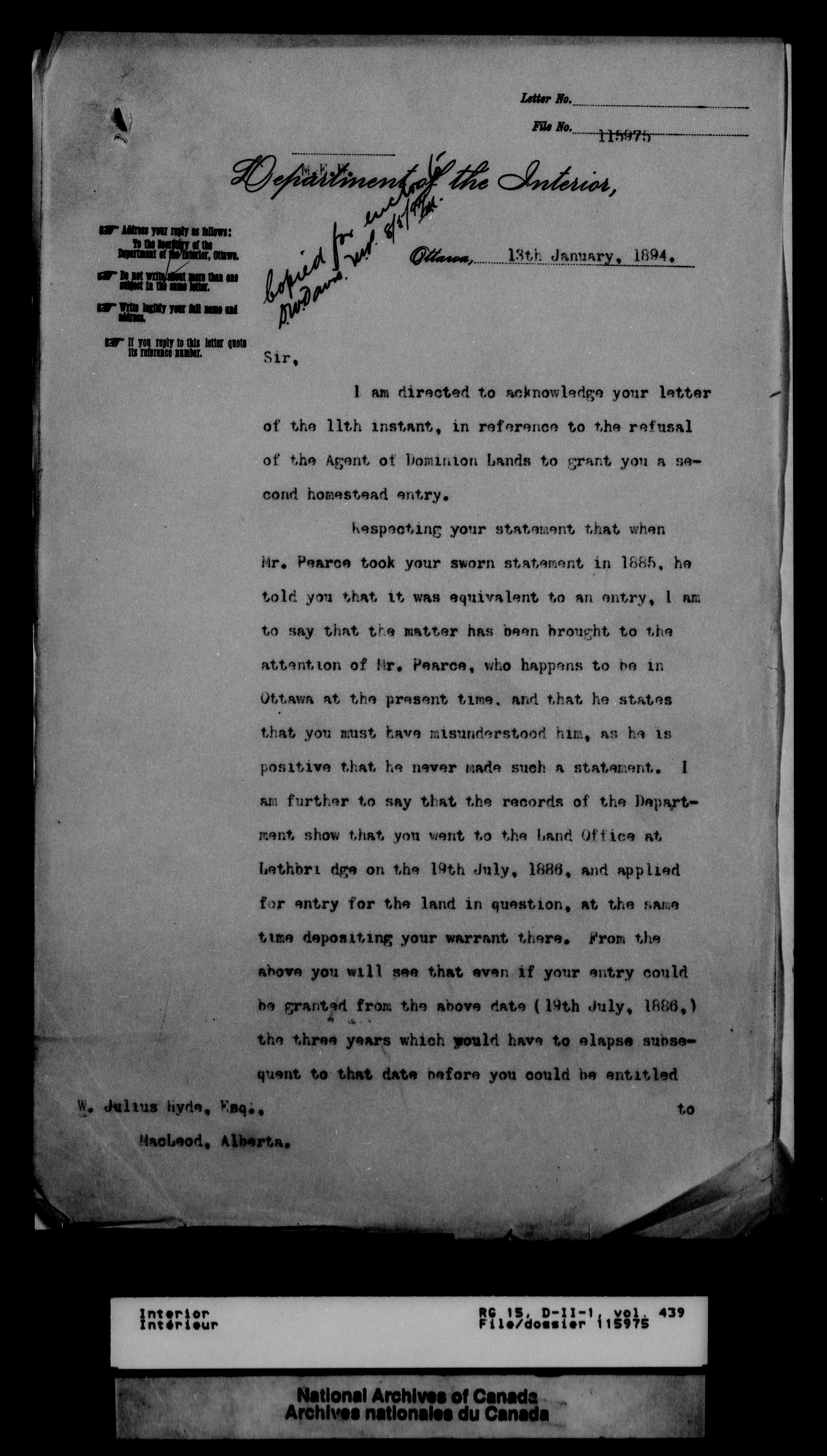 Central registry subject files created by the Dominion Lands Branch - 13133