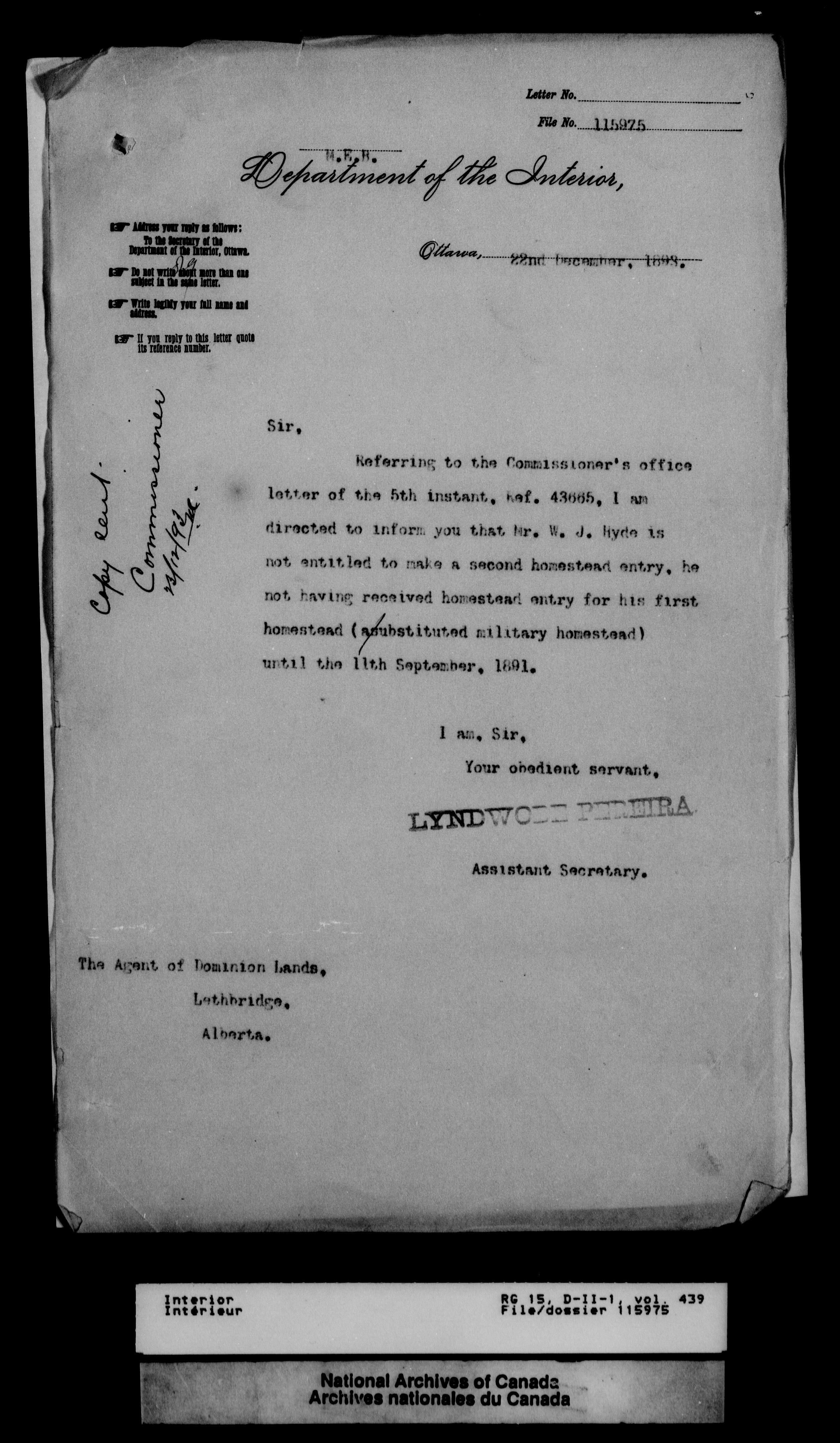 Central registry subject files created by the Dominion Lands Branch - 13133