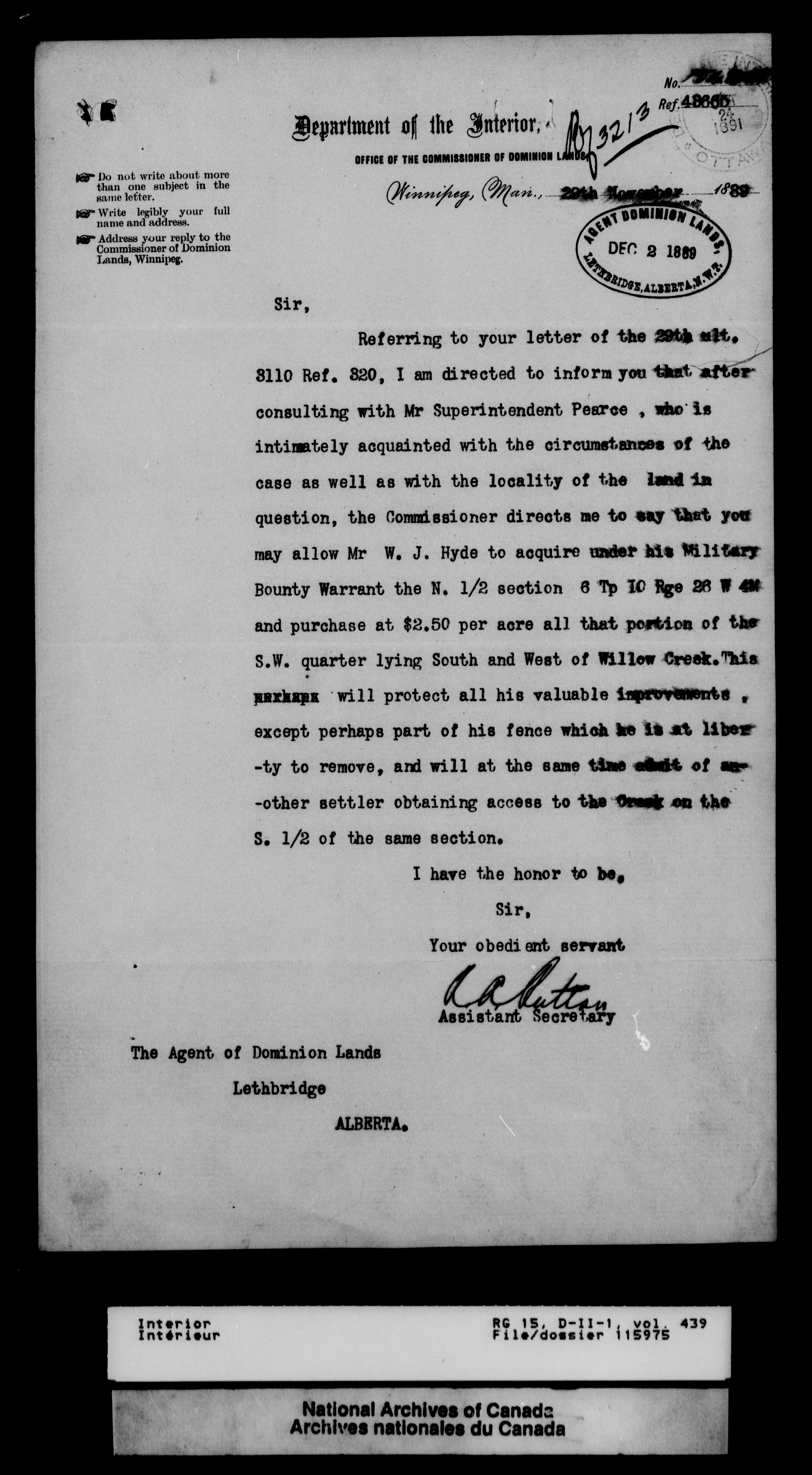 Central registry subject files created by the Dominion Lands Branch - 13133