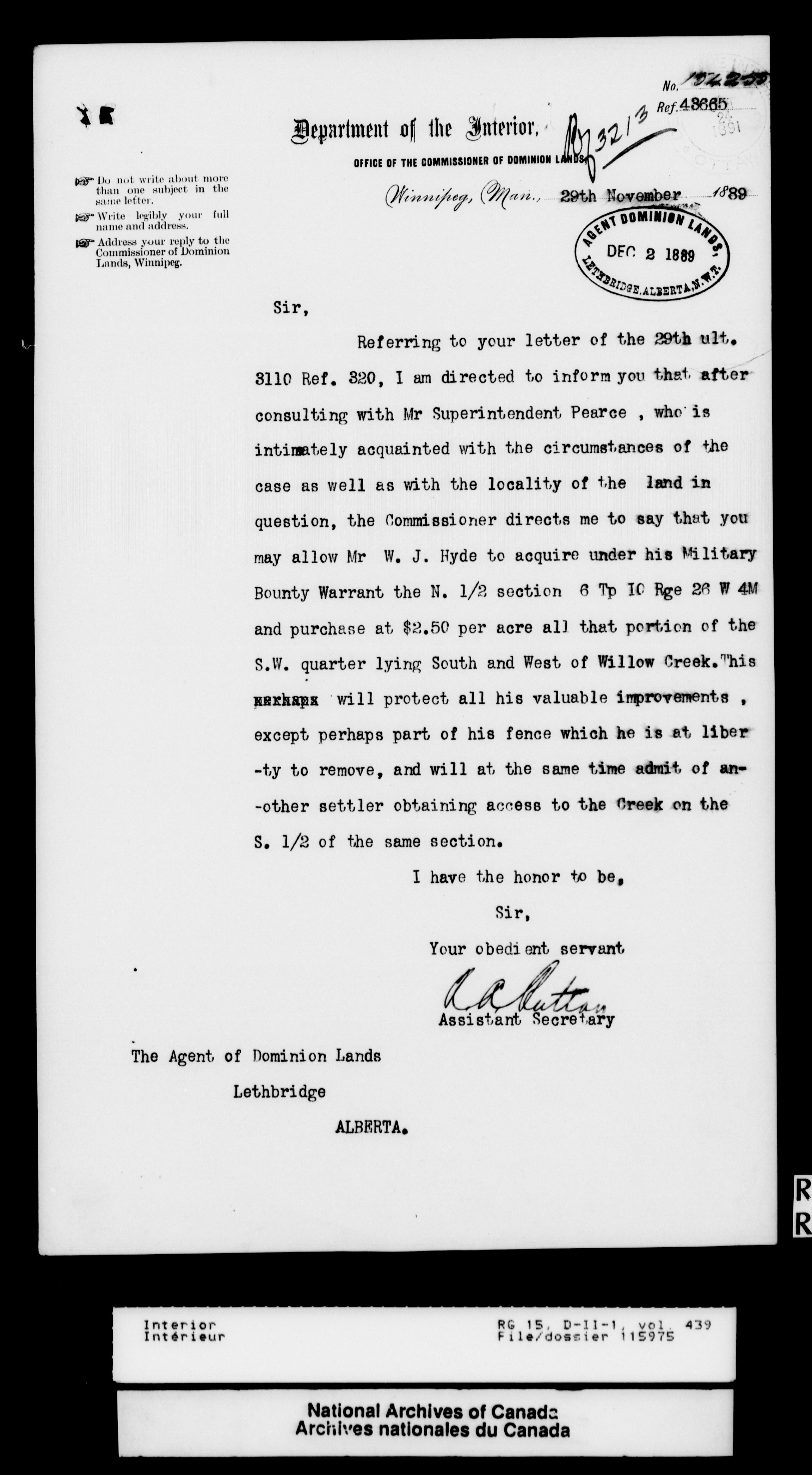 Central registry subject files created by the Dominion Lands Branch - 13133