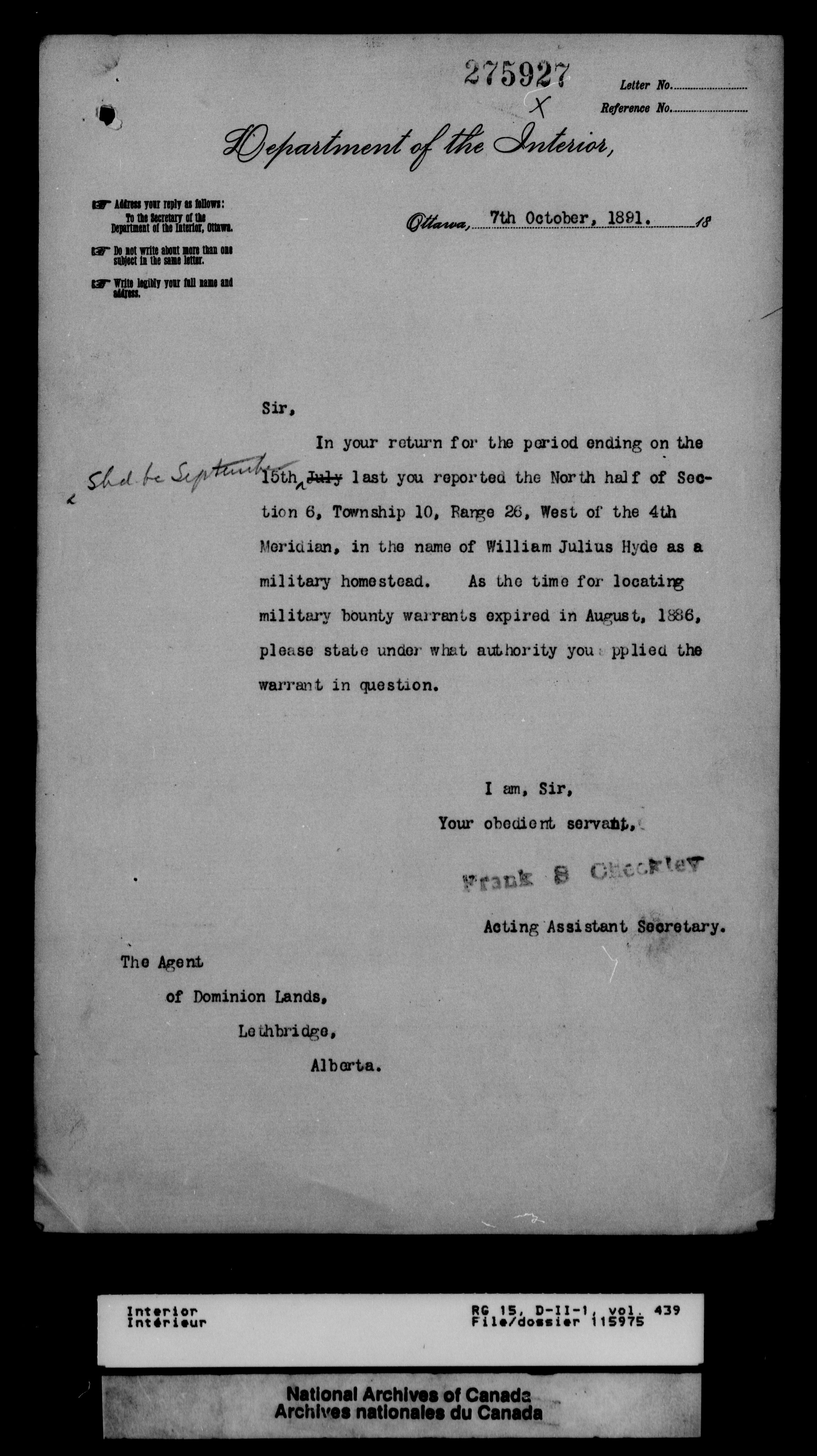 Central registry subject files created by the Dominion Lands Branch - 13133