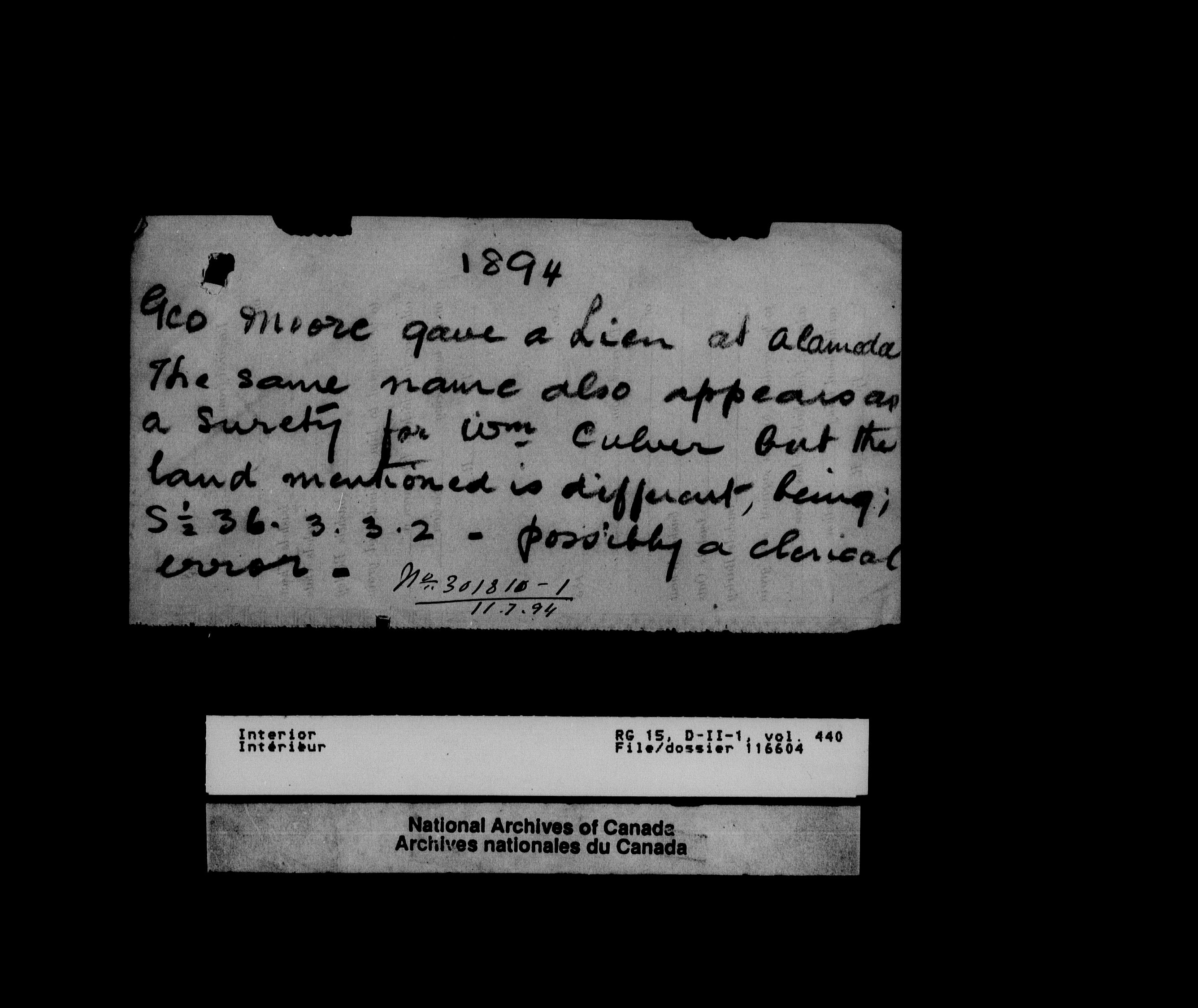 Central registry subject files created by the Dominion Lands Branch - 13134