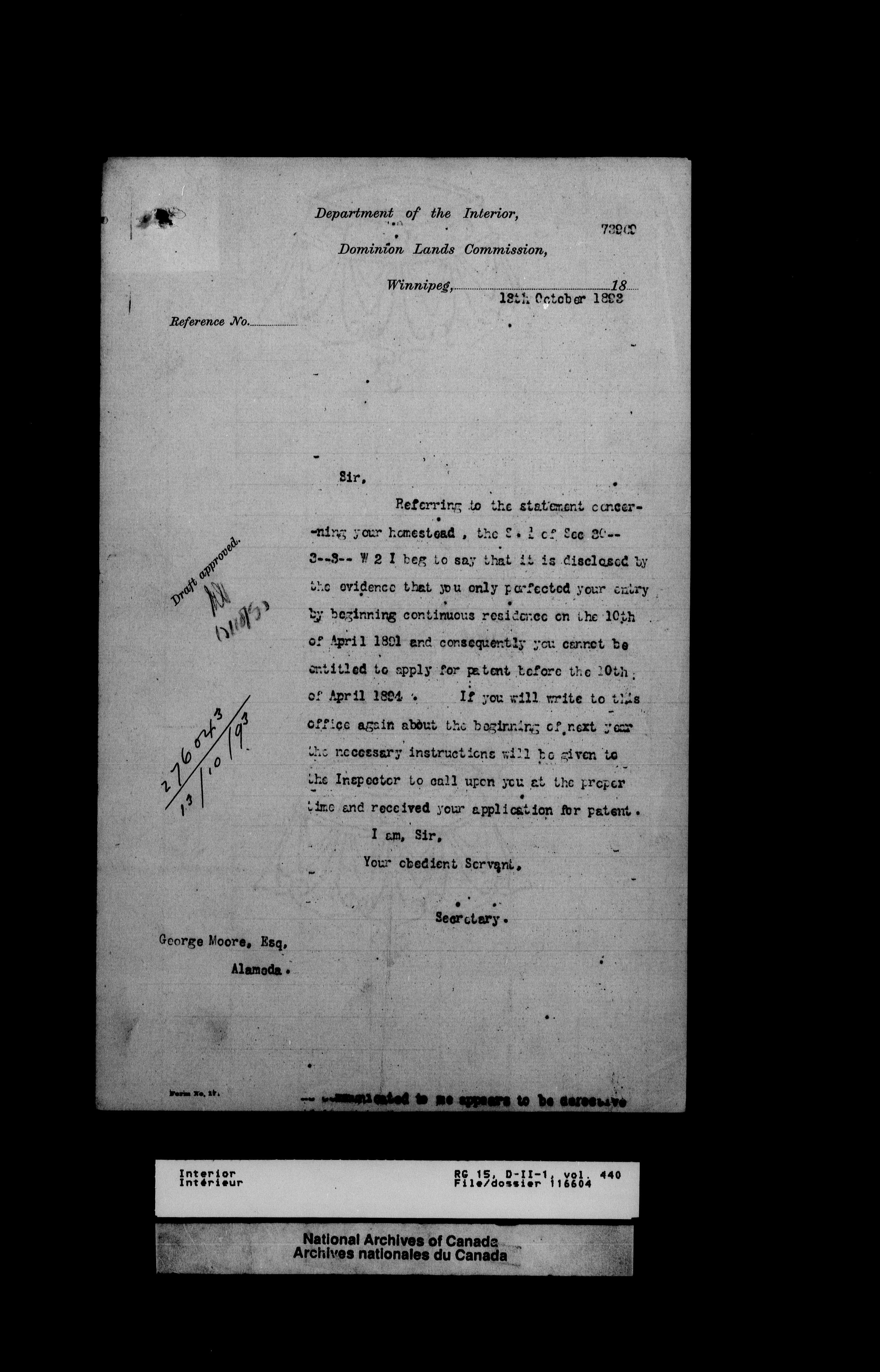 Central registry subject files created by the Dominion Lands Branch - 13134