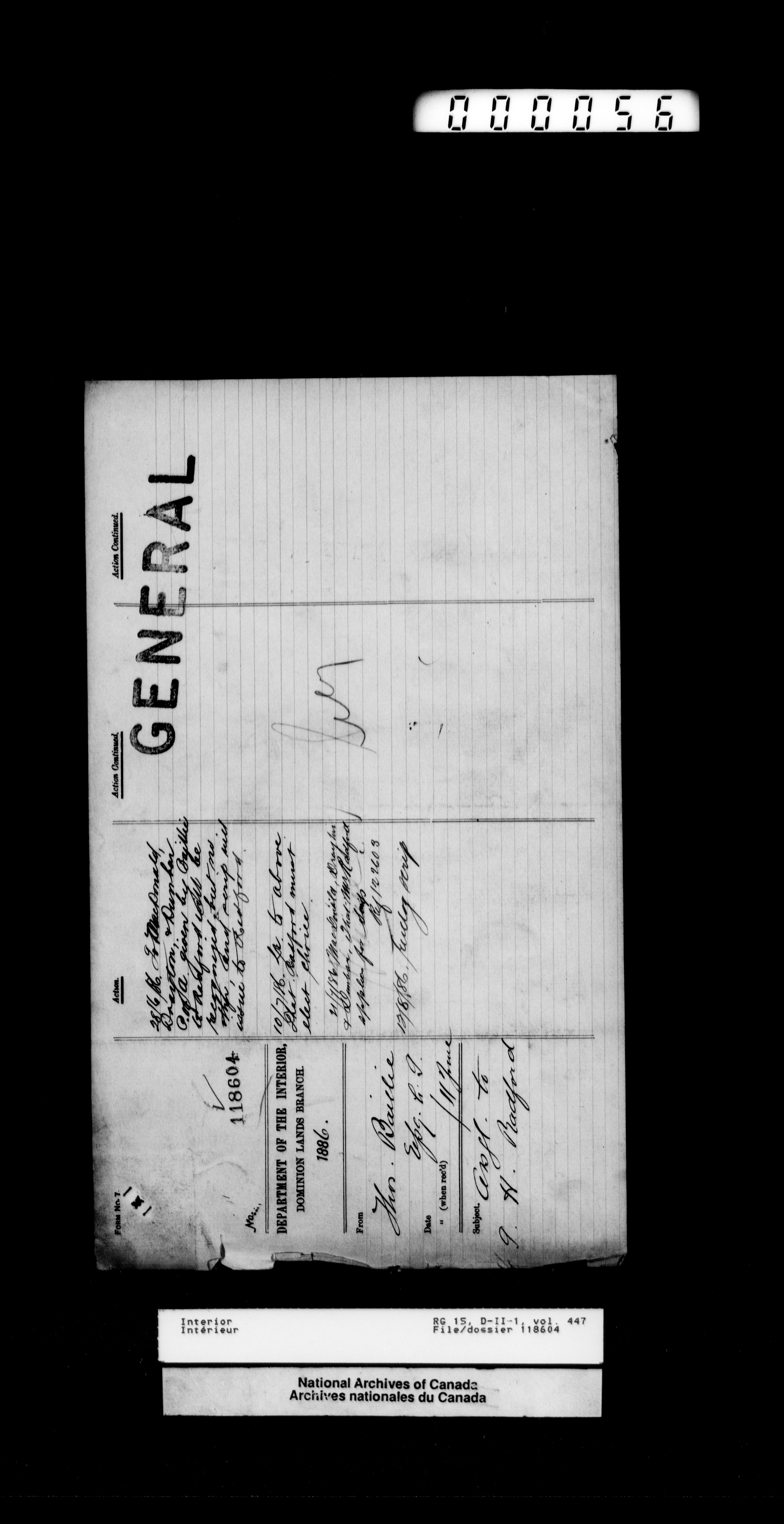Central registry subject files created by the Dominion Lands Branch - 13138
