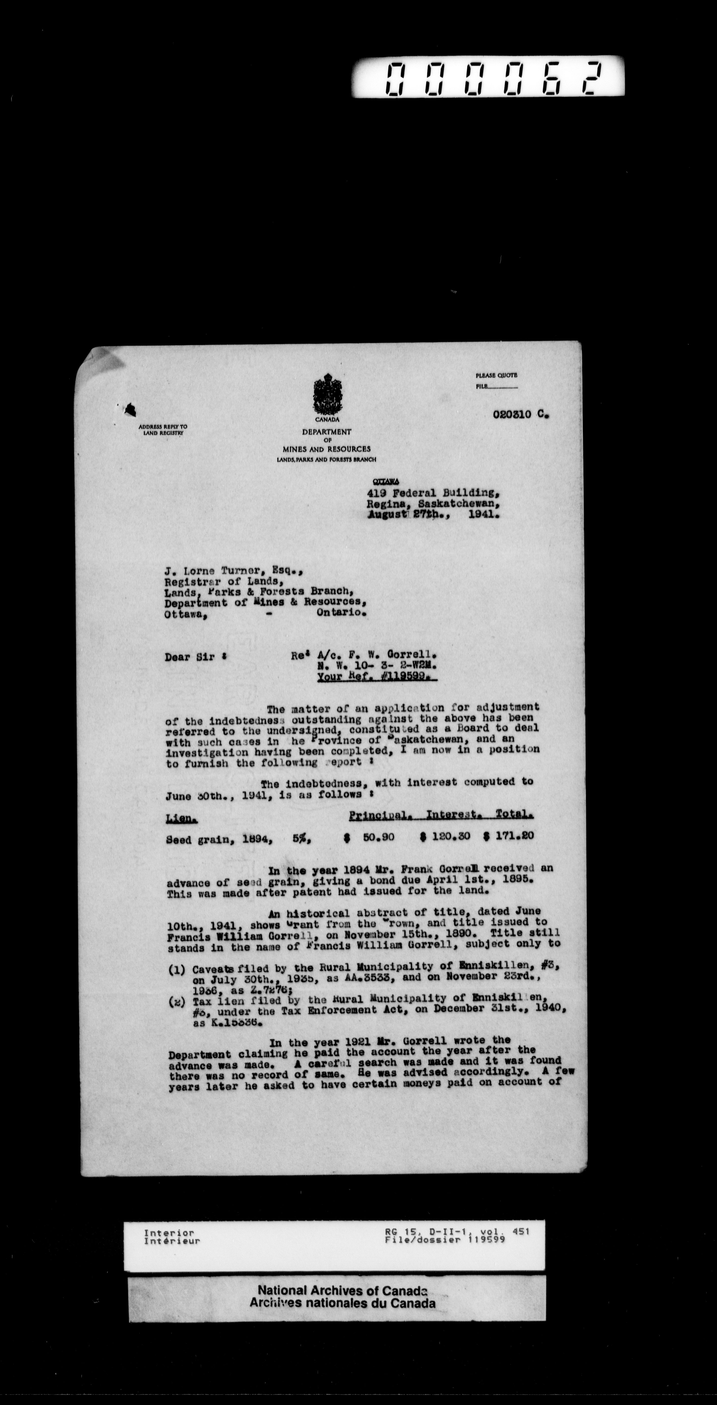 Central registry subject files created by the Dominion Lands Branch - 13141