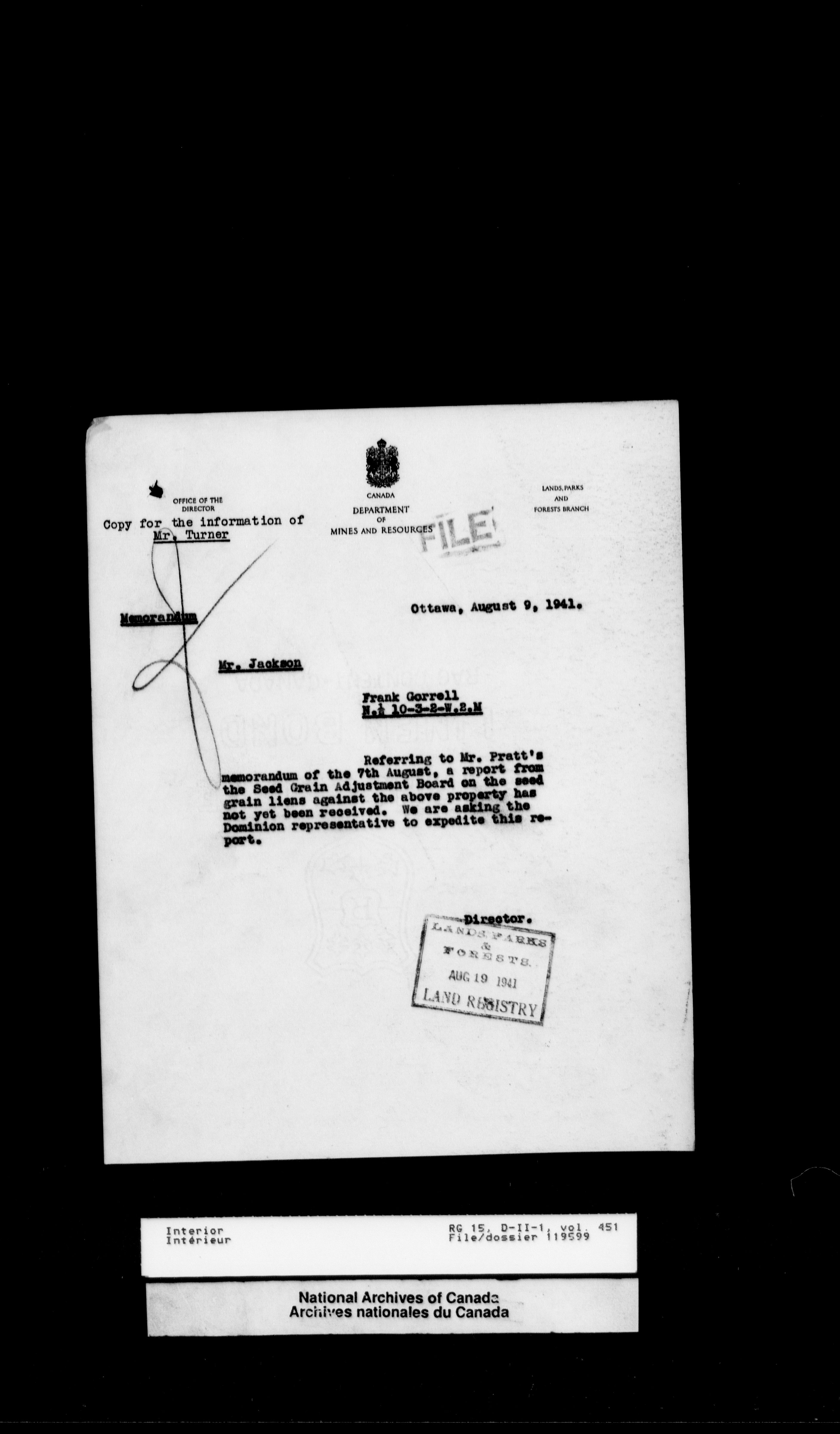 Central registry subject files created by the Dominion Lands Branch - 13141