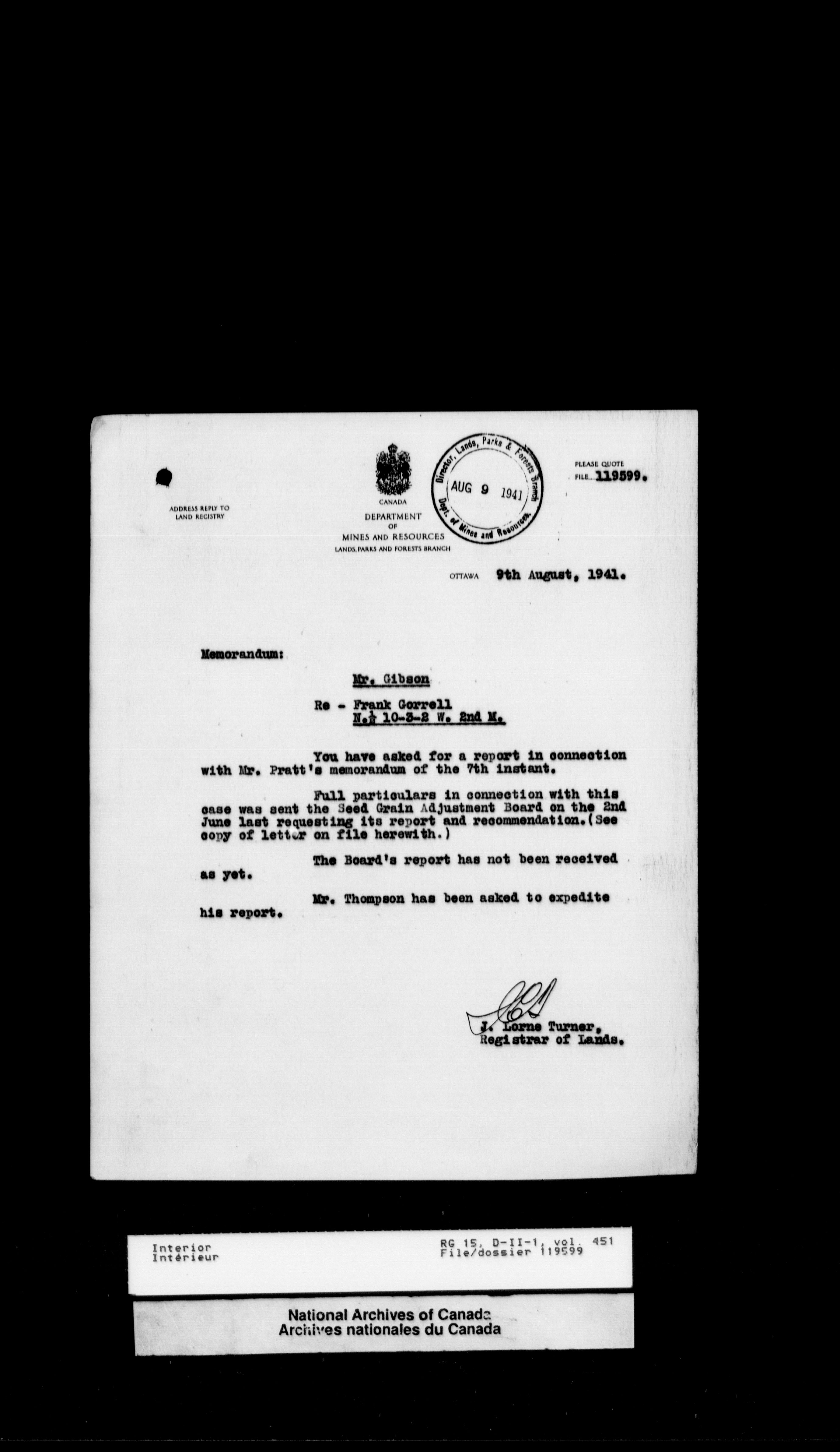 Central registry subject files created by the Dominion Lands Branch - 13141