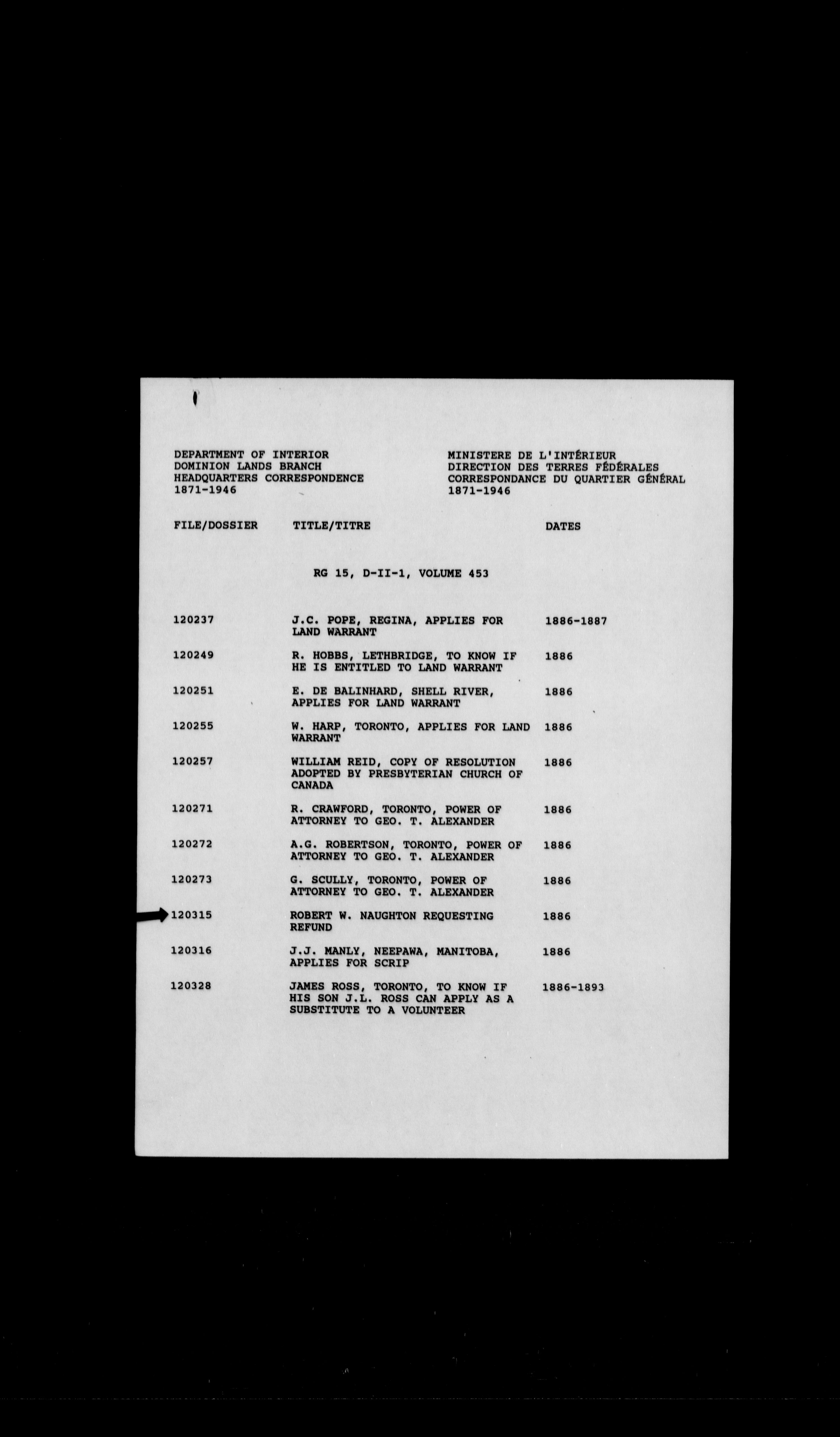 Central registry subject files created by the Dominion Lands Branch - 13142