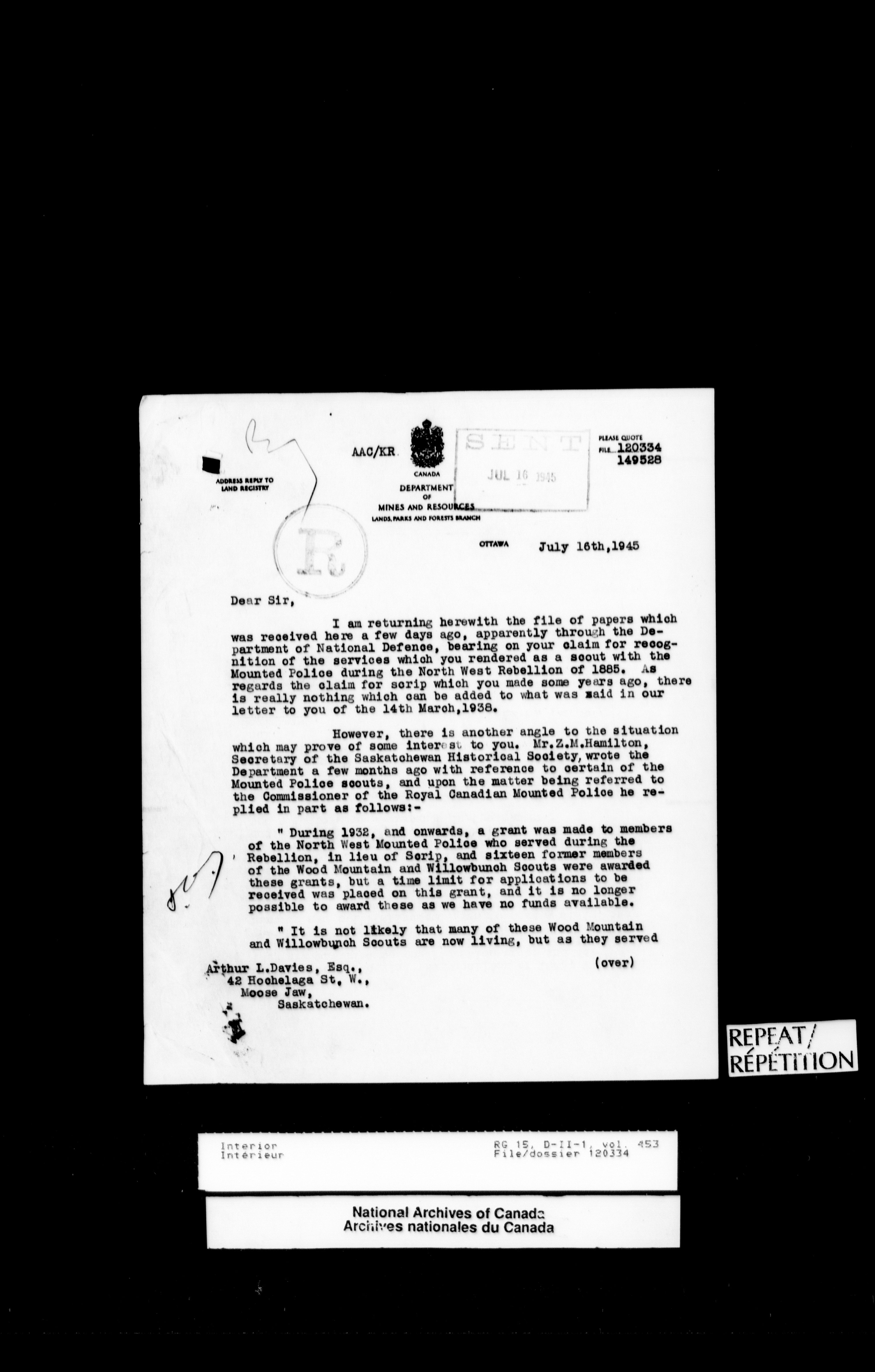 Central registry subject files created by the Dominion Lands Branch - 13142