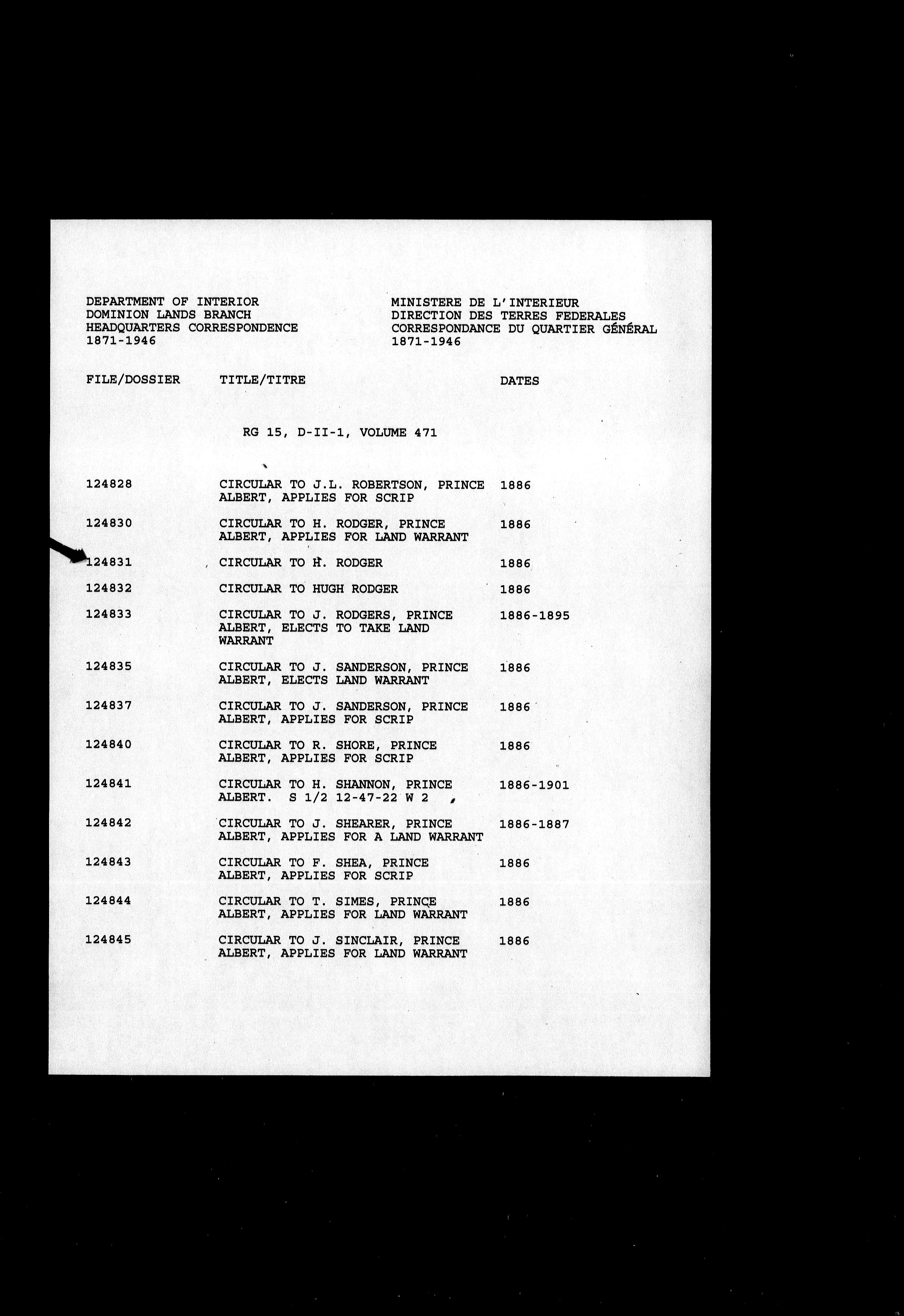 Central registry subject files created by the Dominion Lands Branch - 13153