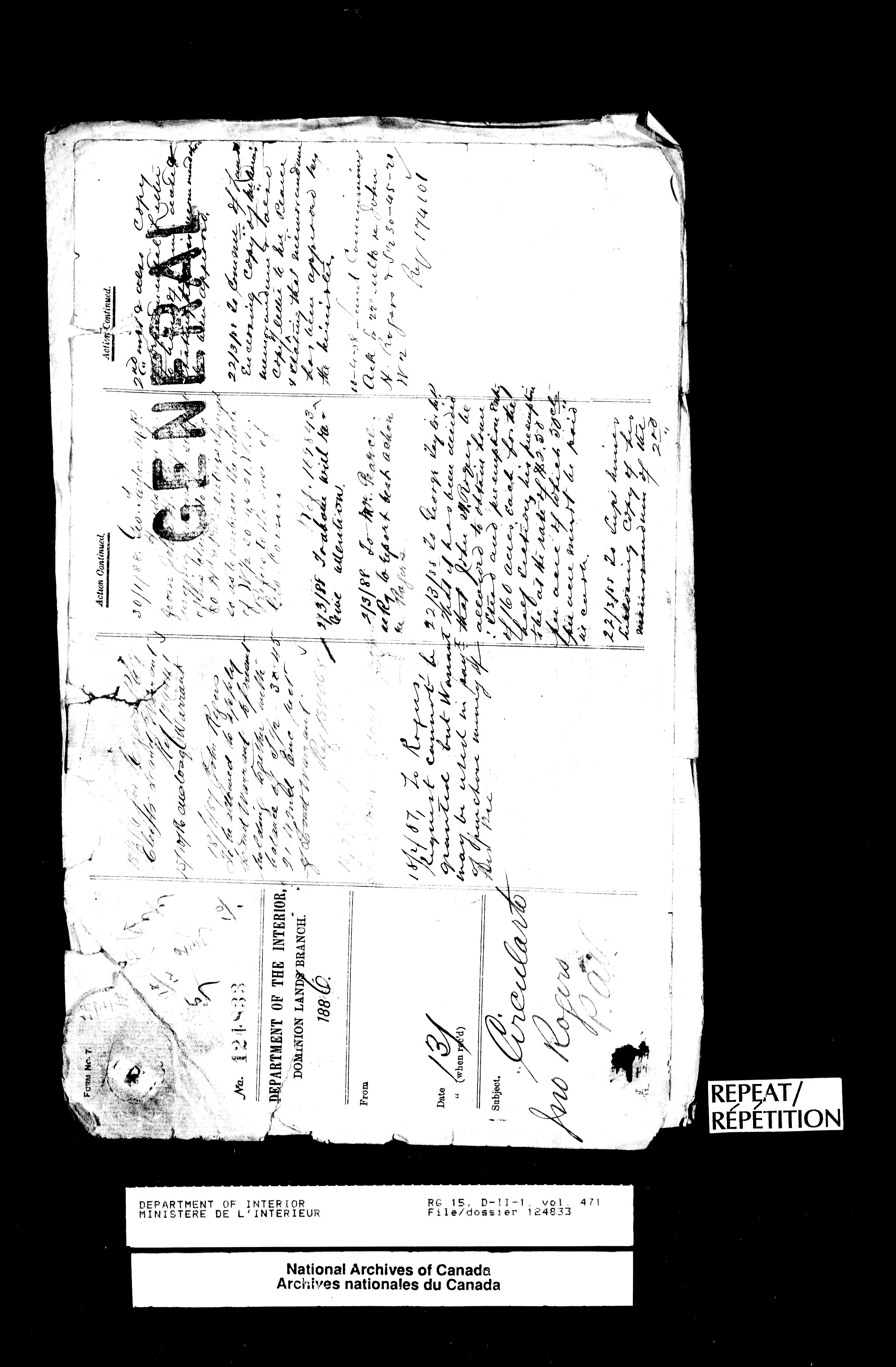 Central registry subject files created by the Dominion Lands Branch - 13153