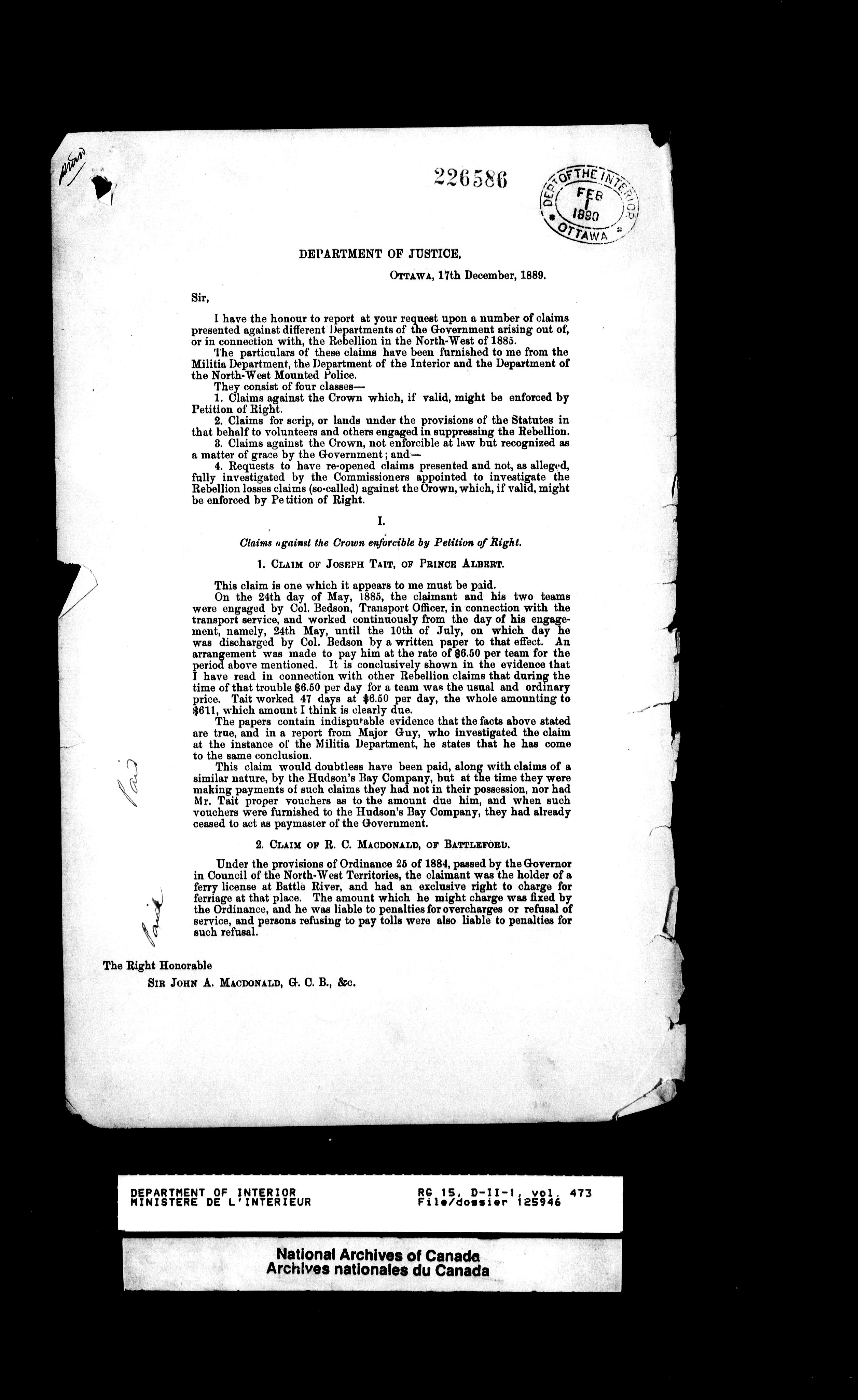 Central registry subject files created by the Dominion Lands Branch - 13154