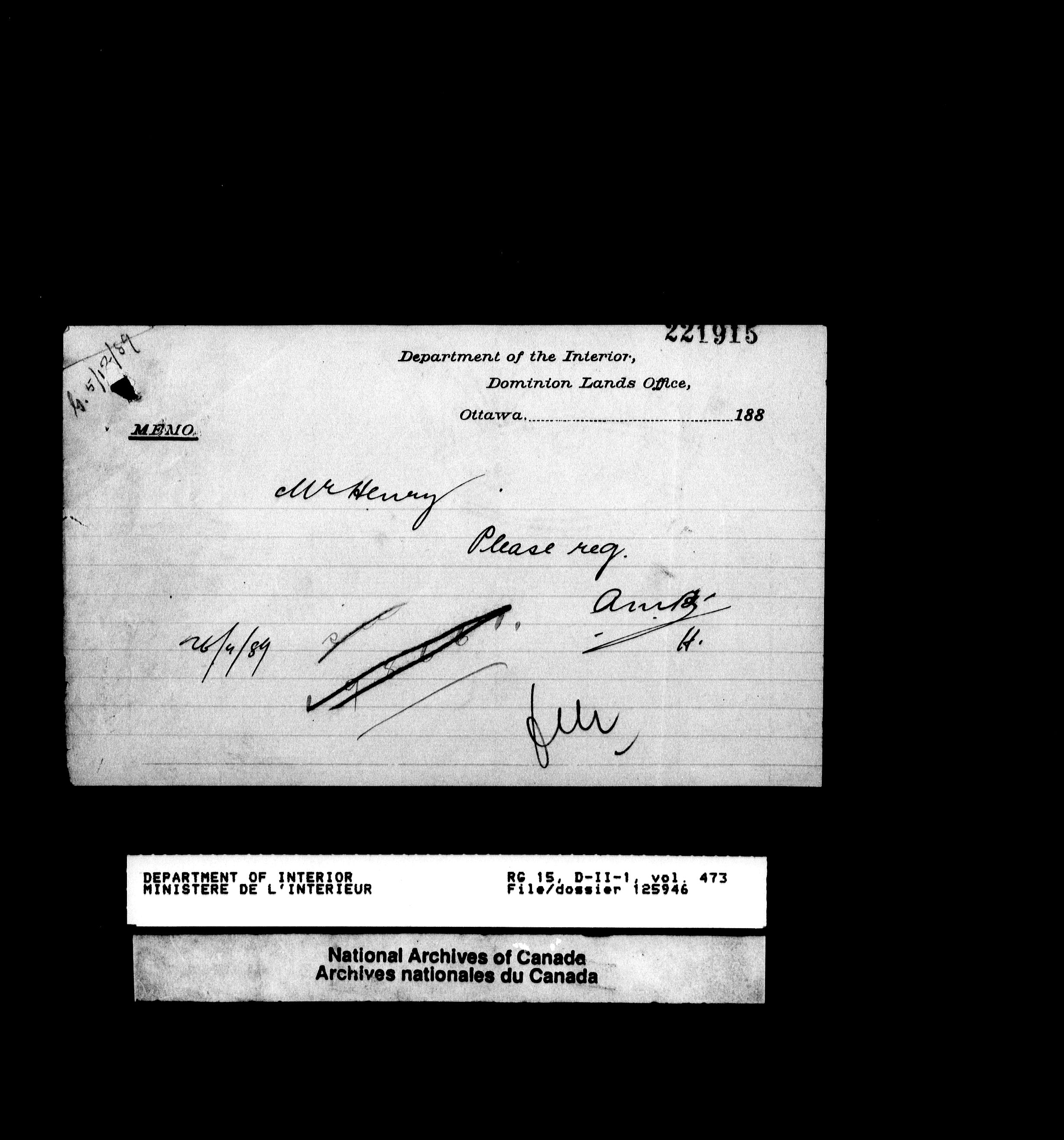 Central registry subject files created by the Dominion Lands Branch - 13154
