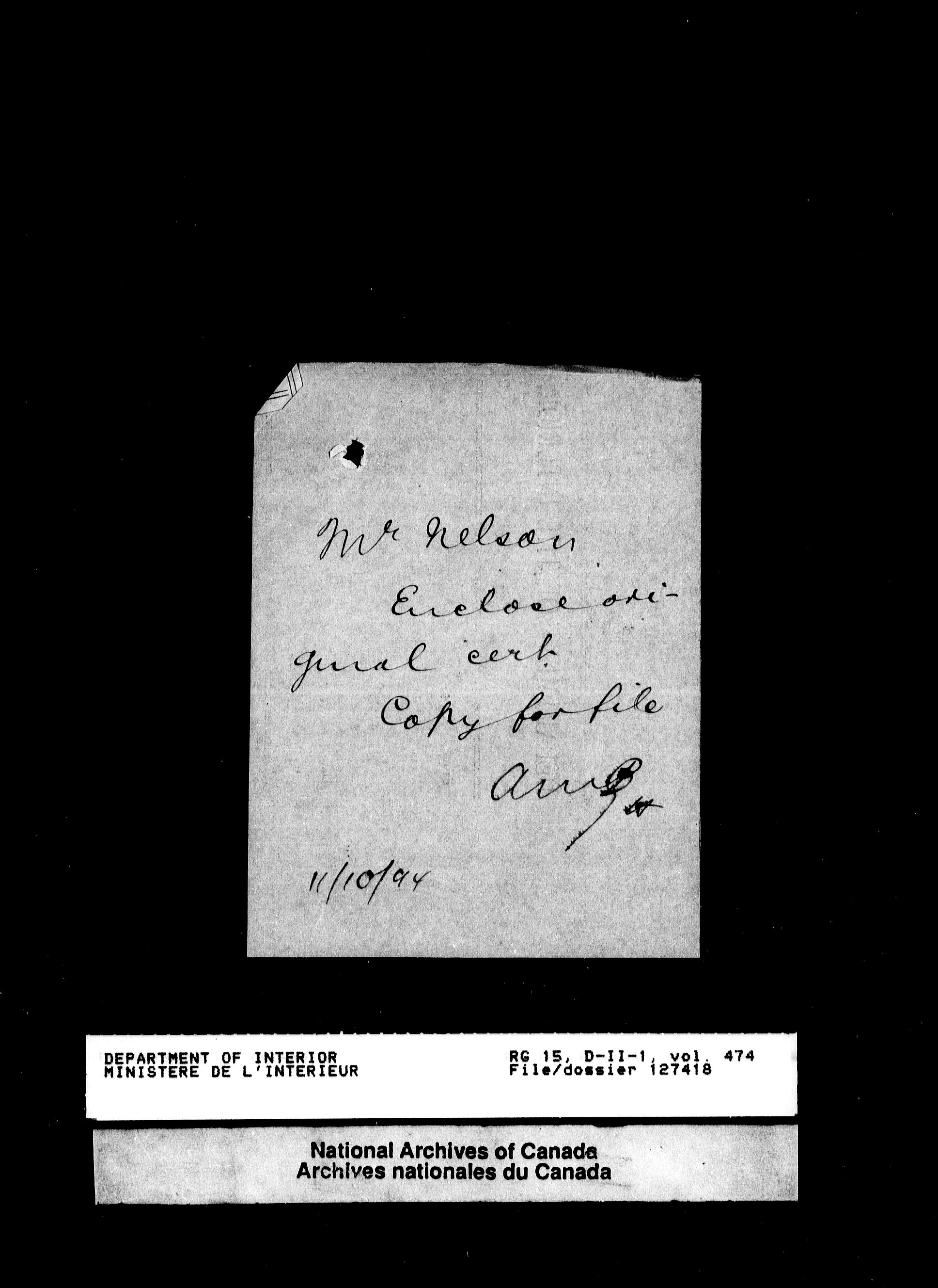 Central registry subject files created by the Dominion Lands Branch - 13155