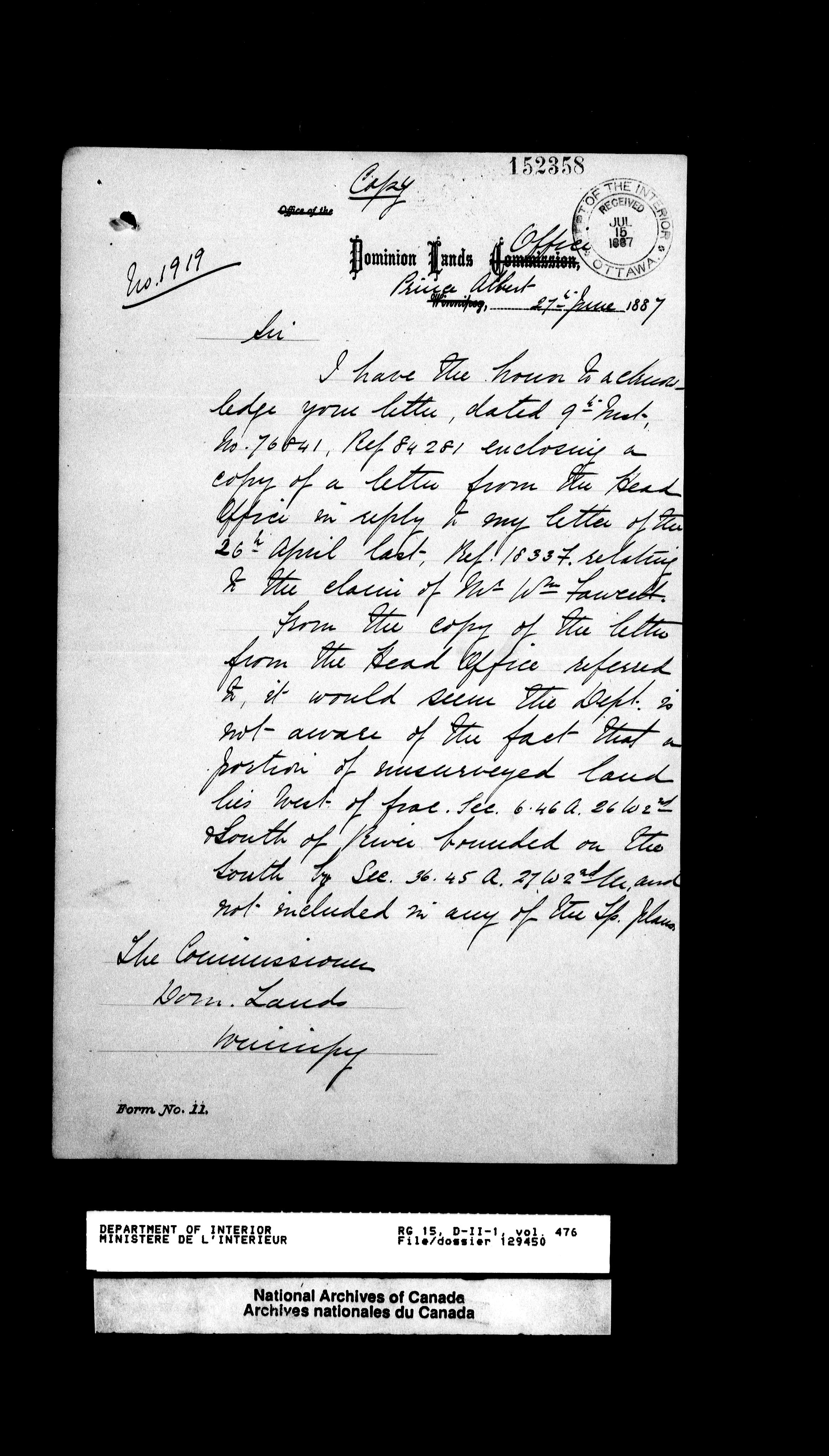 Central registry subject files created by the Dominion Lands Branch - 13156
