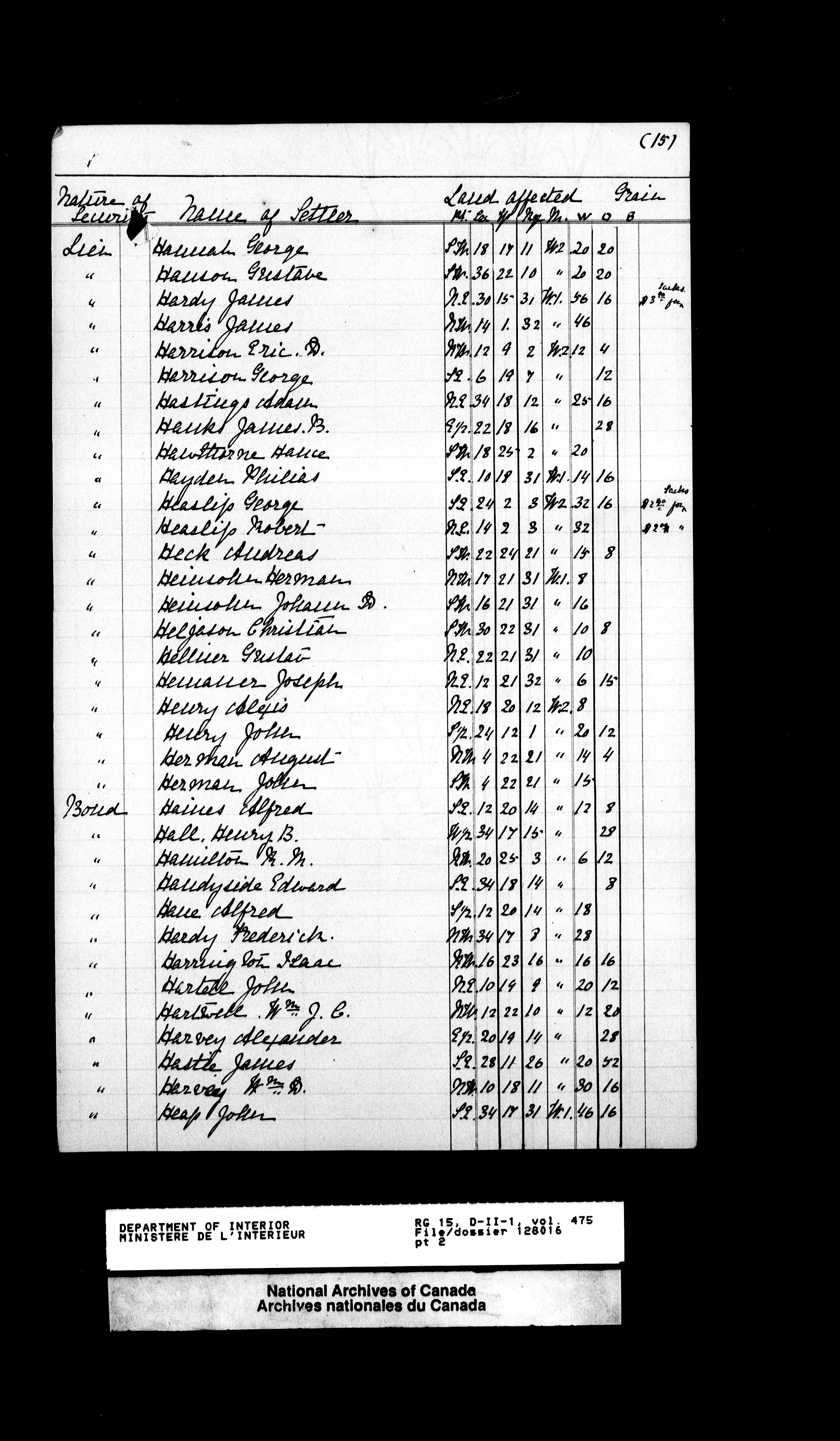 Central registry subject files created by the Dominion Lands Branch - 13156