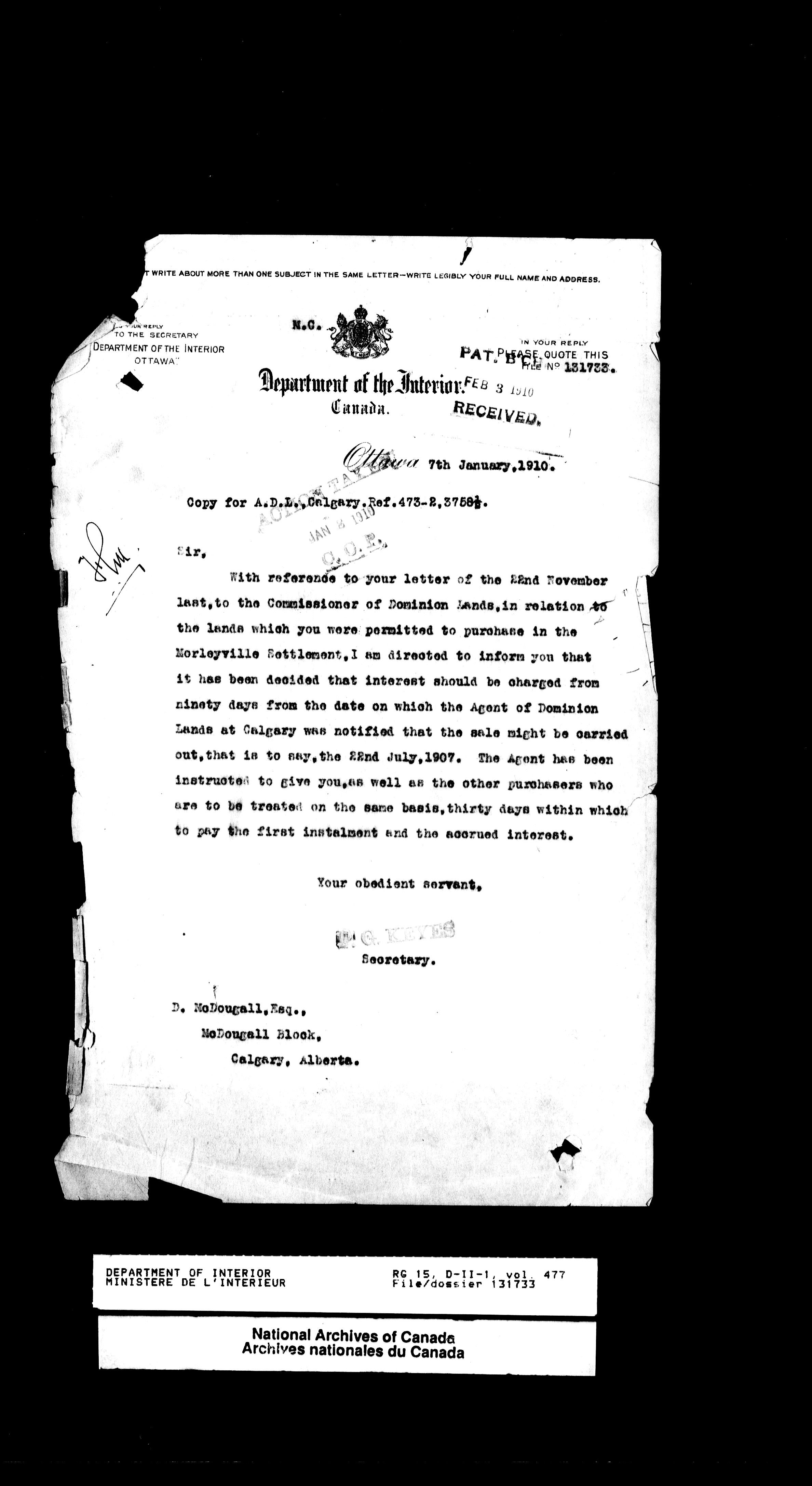 Central registry subject files created by the Dominion Lands Branch - 13157