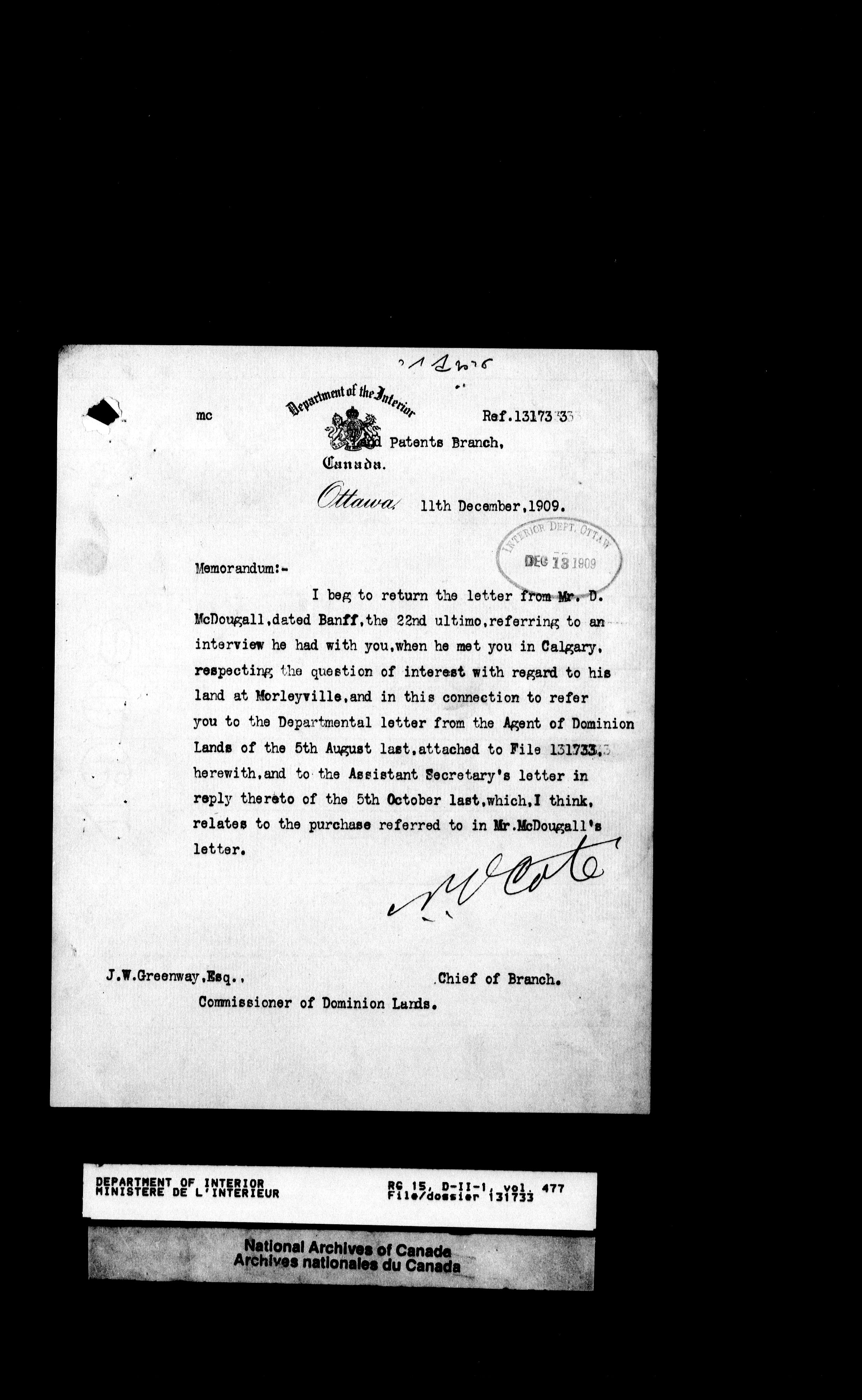 Central registry subject files created by the Dominion Lands Branch - 13157