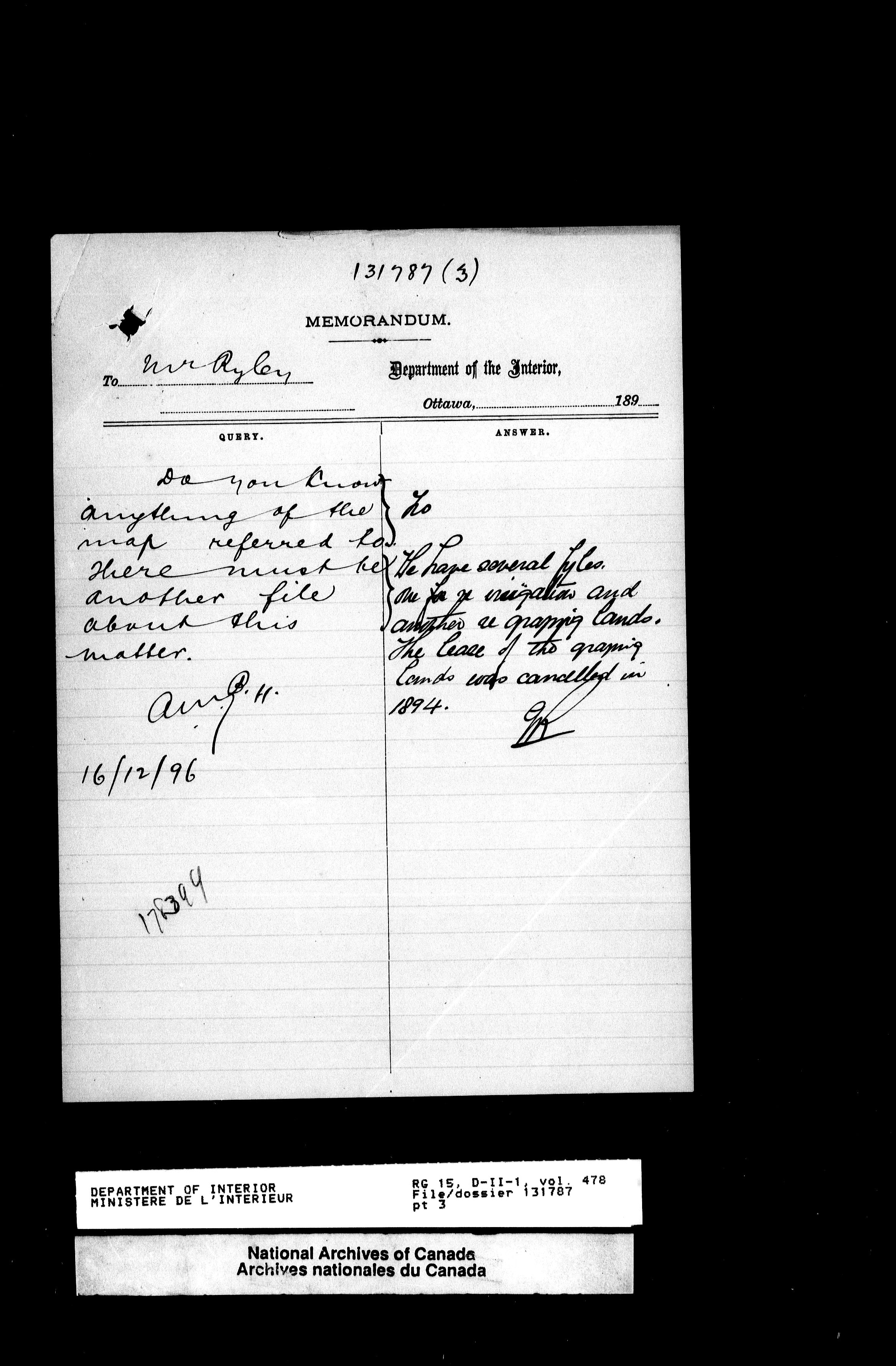 Central registry subject files created by the Dominion Lands Branch - 13159
