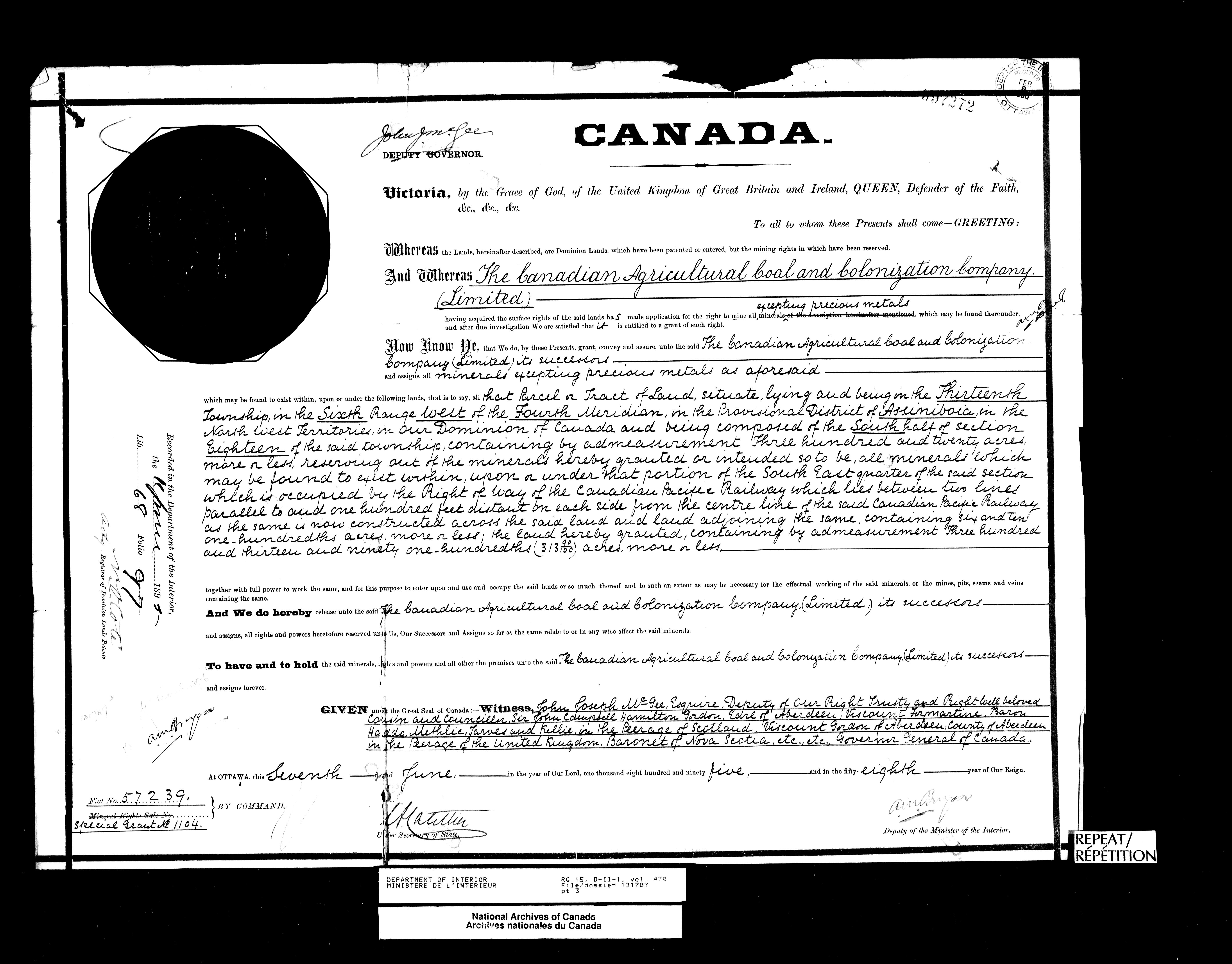Central registry subject files created by the Dominion Lands Branch - 13159