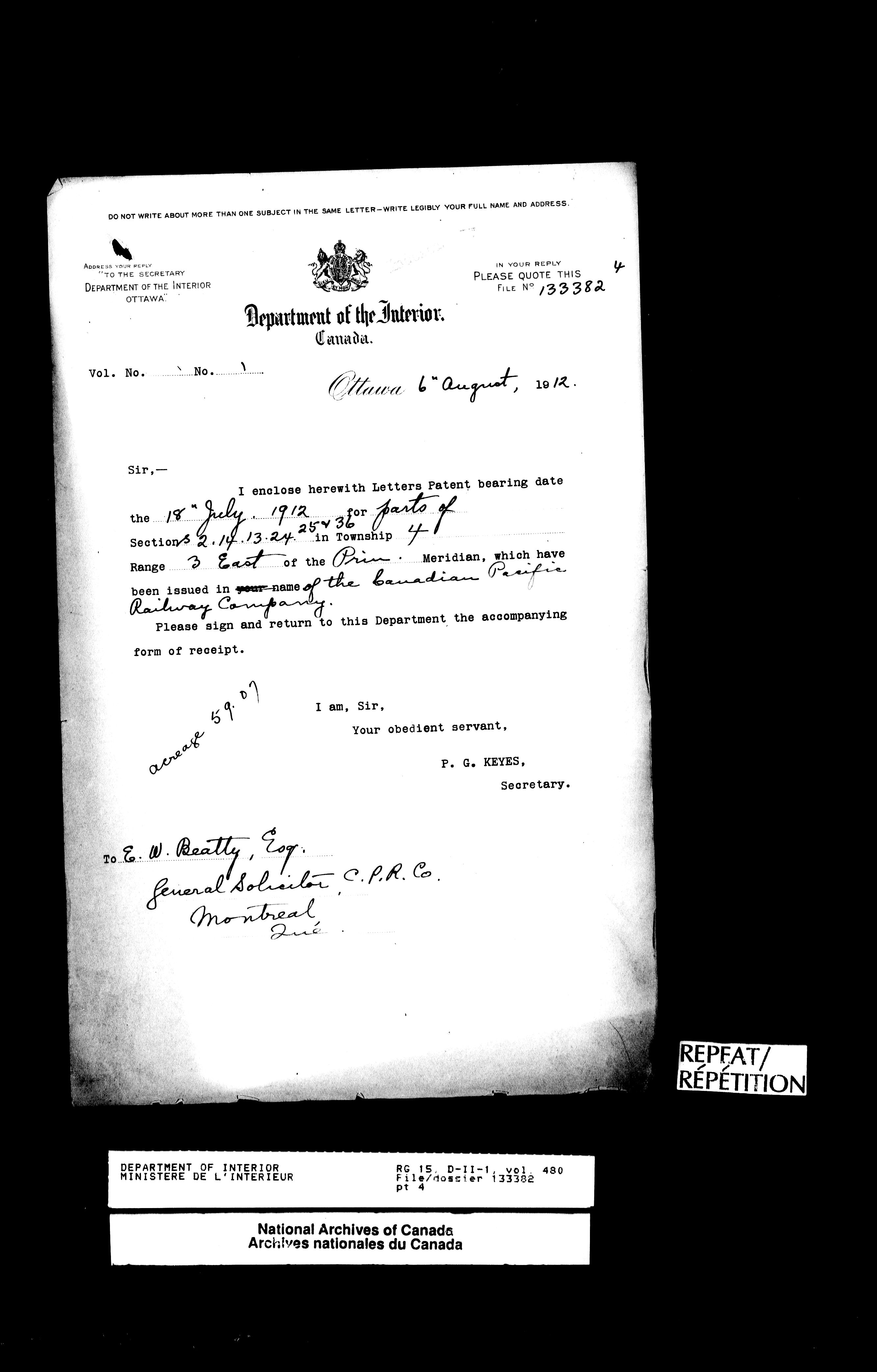 Central registry subject files created by the Dominion Lands Branch - 13161